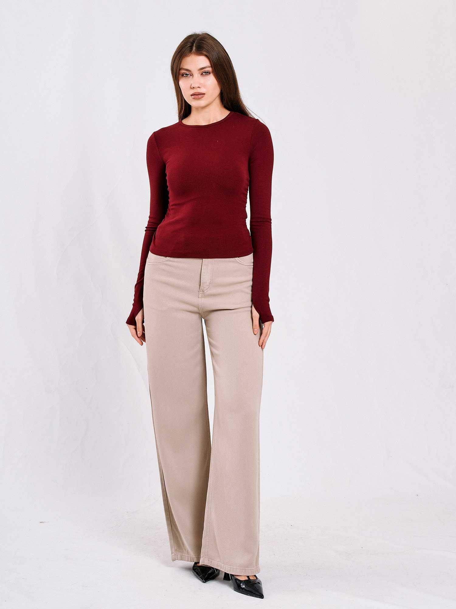 071782 Yanları Büzgülü Bluz Bordo (W25W-LF-071782)