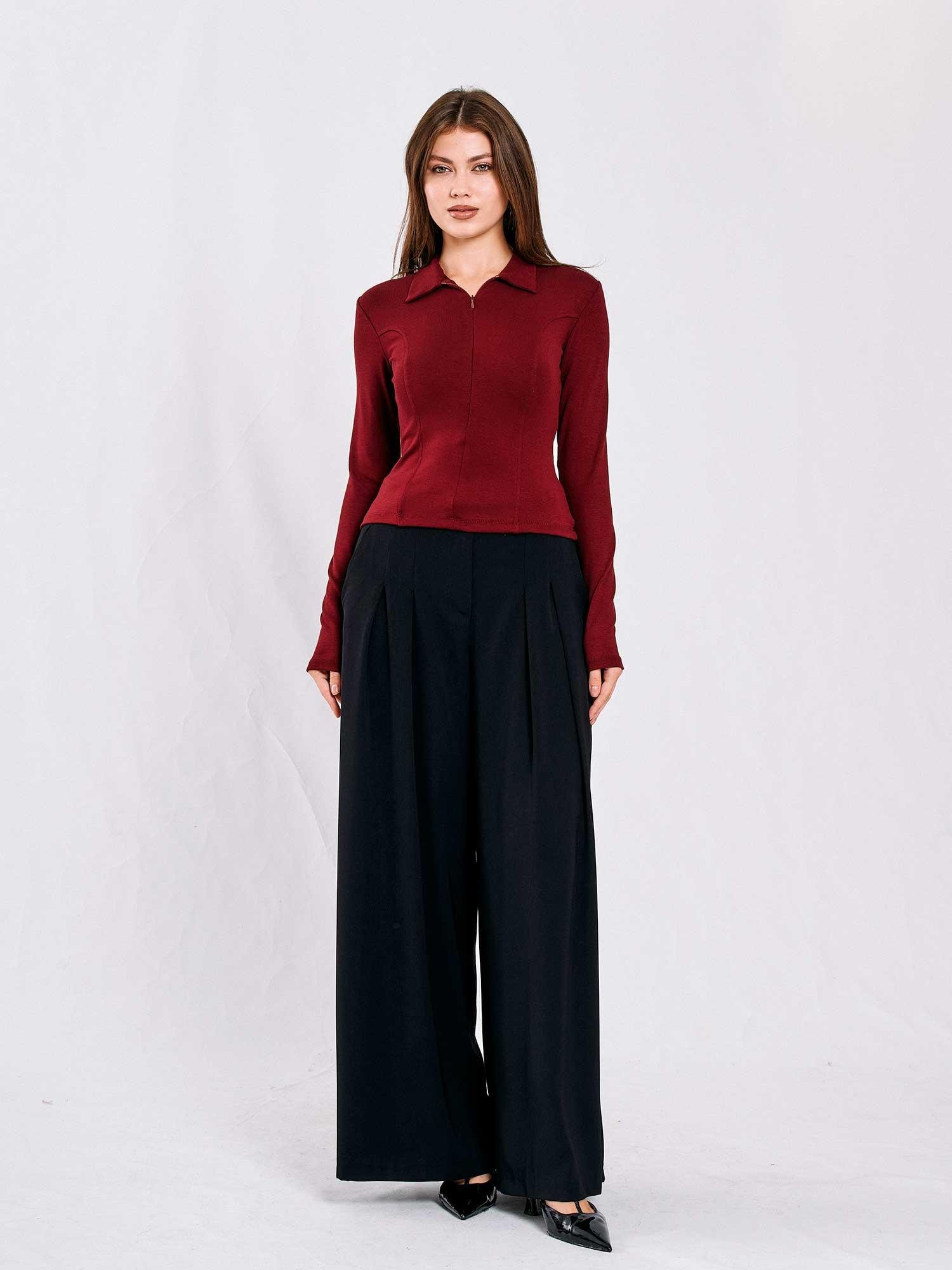071785 Önü Fermuar Detaylı Bluz Bordo (W25W-LF-071785)
