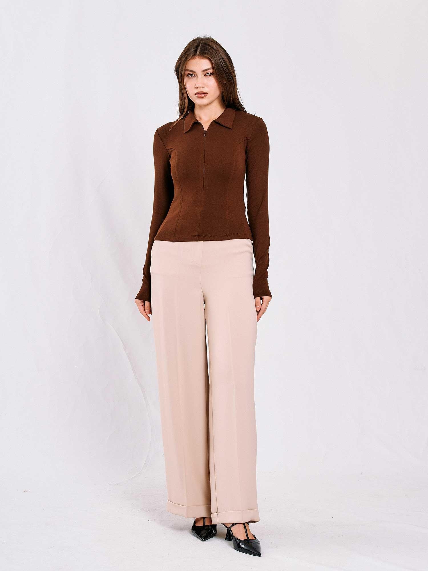 071785 Önü Fermuar Detaylı Bluz Kahve (W25W-LF-071785)