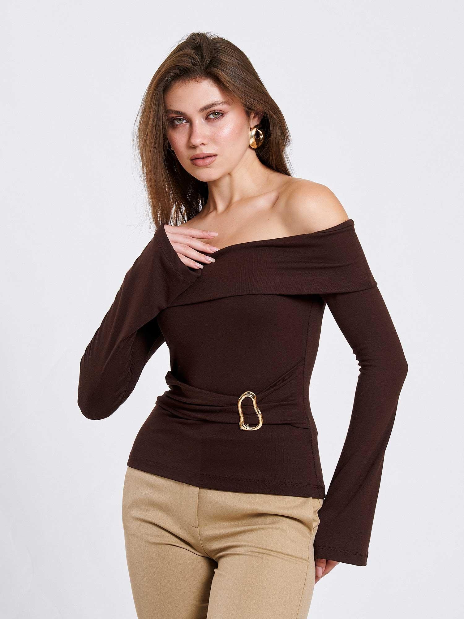071797 Kayık Yaka Bluz Kahve (w25W-LF-071797)