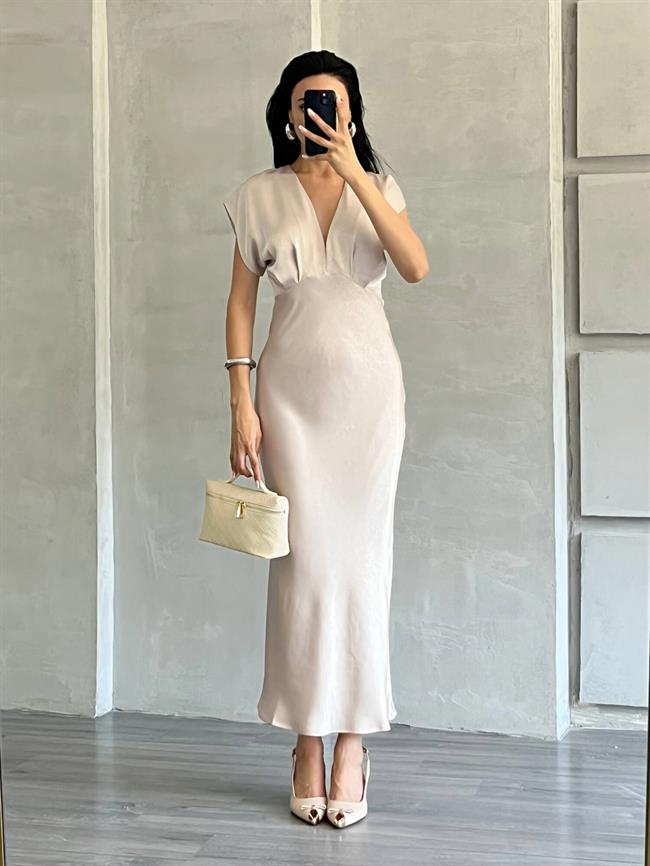 Açık Yaka Uzun Elbise Taş (W25W-LF-111610)