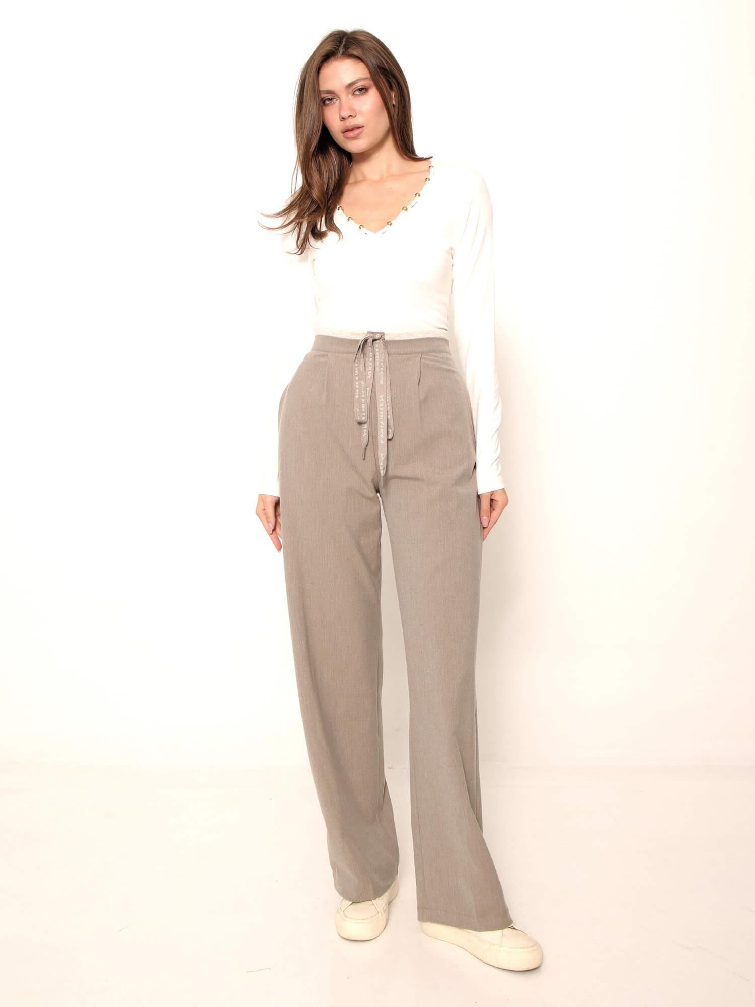 Bel Detaylı Yazılı Bağcıklı Pantolon Pnt01105 Gri (W25W-KUZ-00072)
