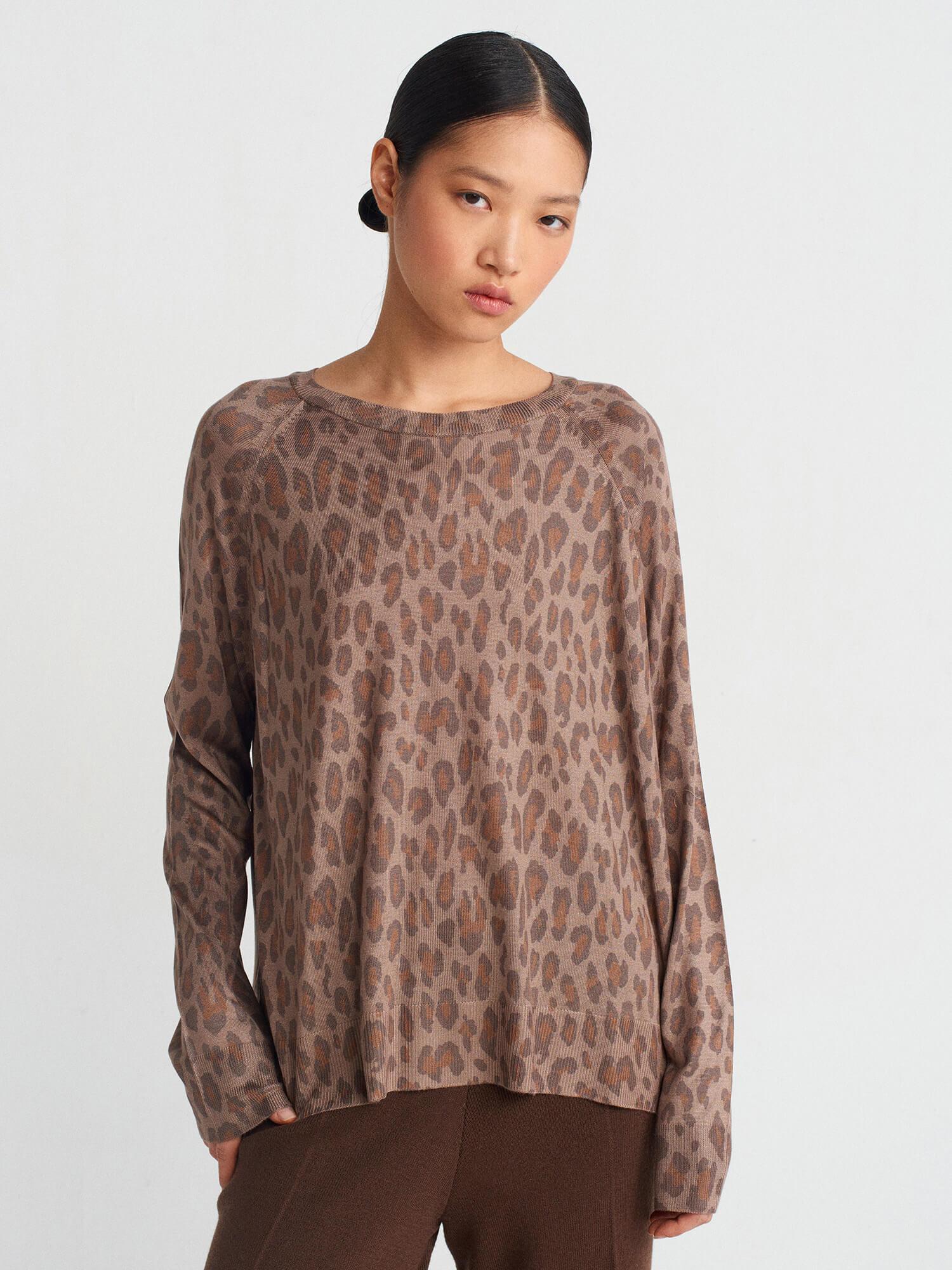 Bisiklet Yaka Leopar Desenli Kazak 10666 Vizon (W25W-DLV-00016)