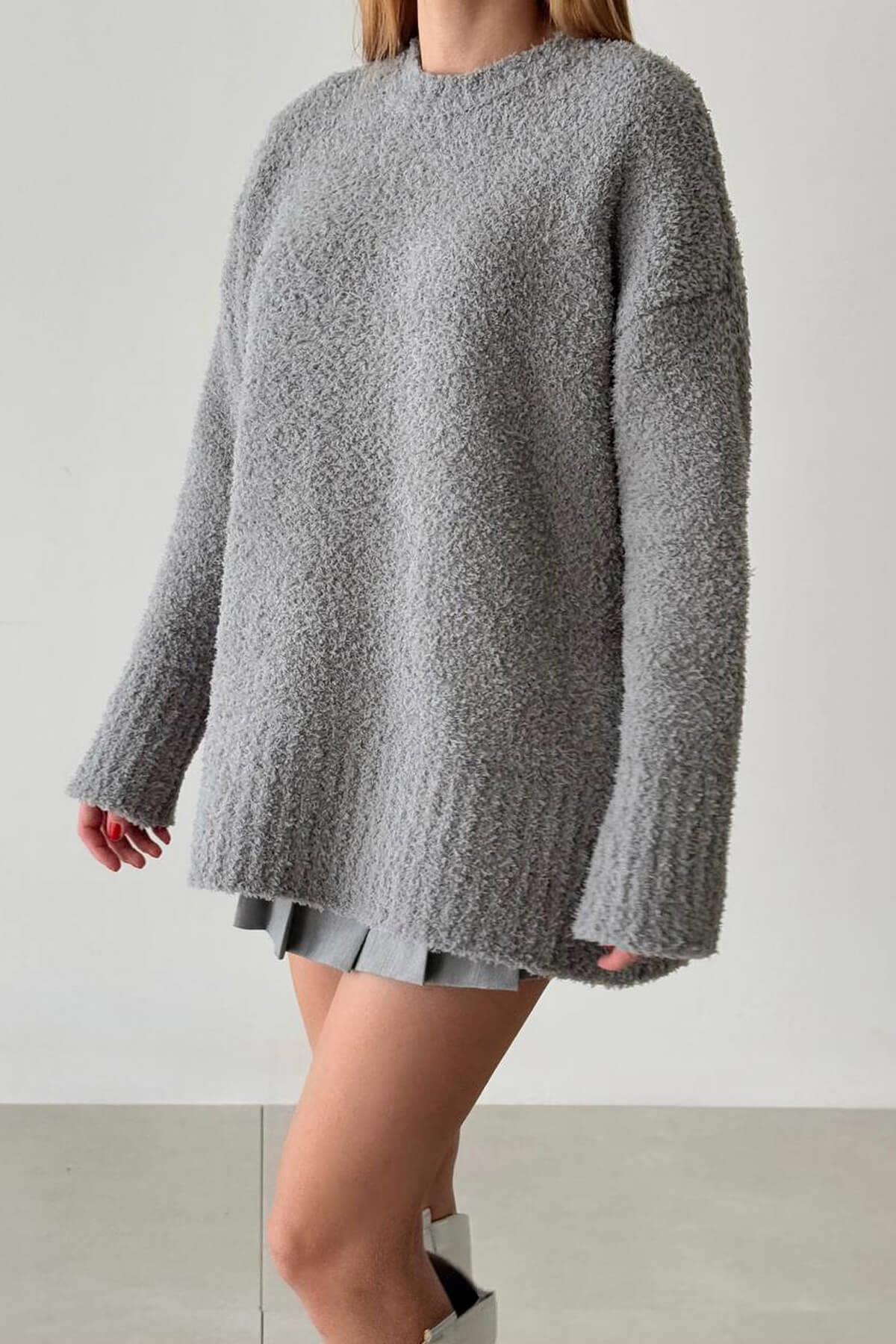 Bisiklet Yaka Yumuşak Dokulu Kazak Gri (W24W-BSU-00188)