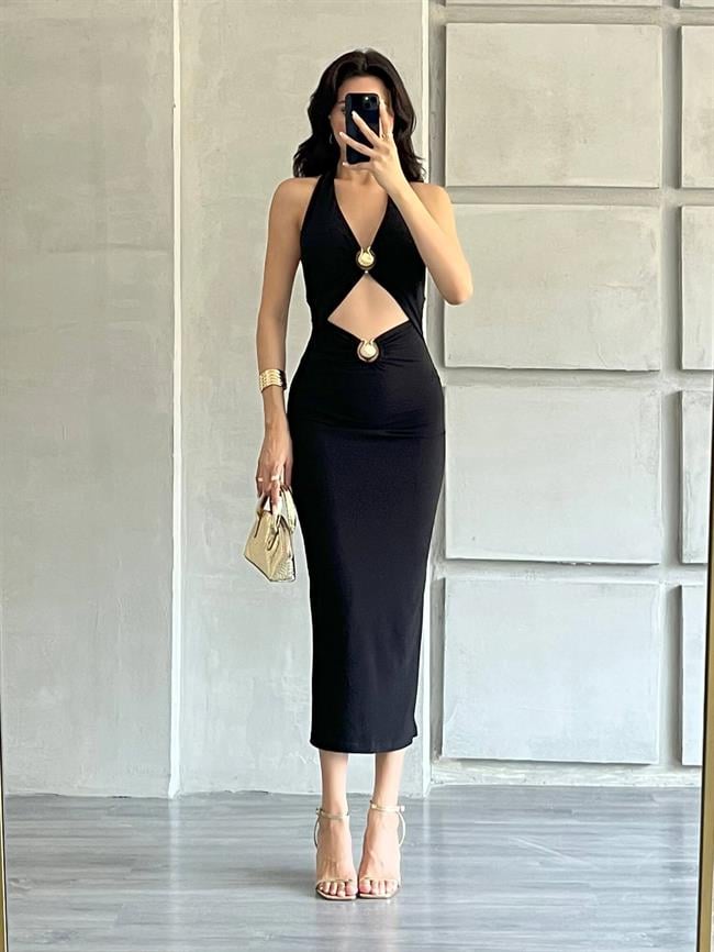 Boyundan Bağlamalı Elbise Siyah (W25W-FLW-00008)