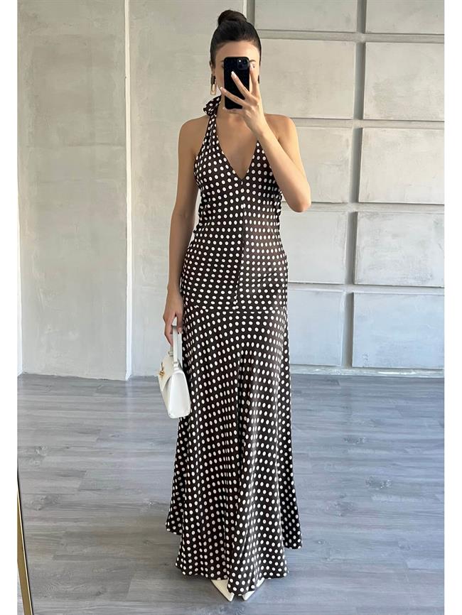 Boyundan Bağlamalı Pauntiyeli Elbise Kahve (W25W-FLW-00002)