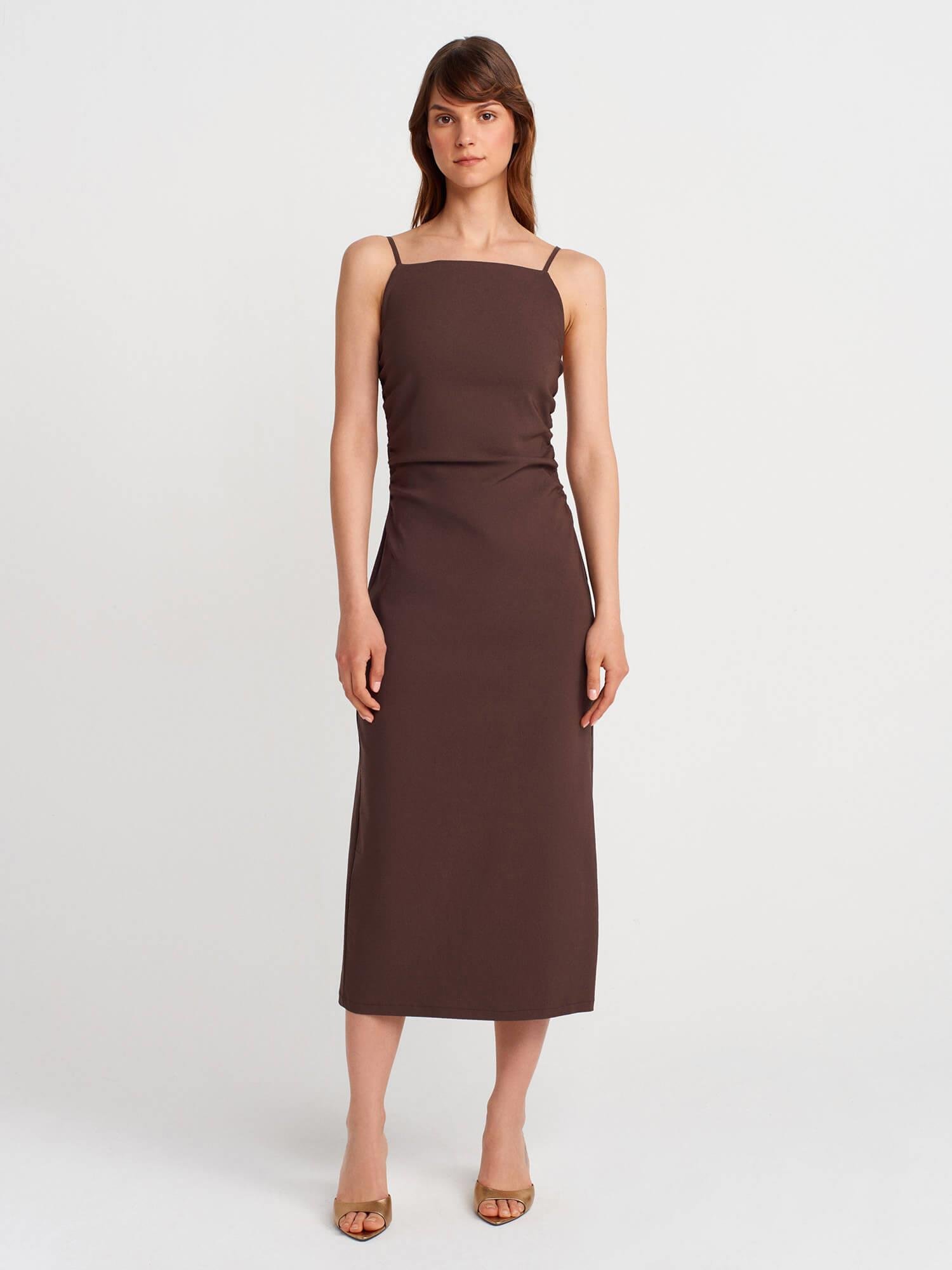 Büzgülü Midi Elbise 91479 Kahve (W25S-DLV-00125)