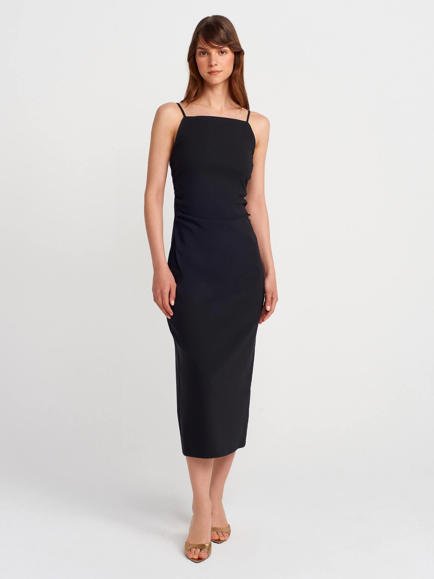 Büzgülü Midi Elbise 91479 Siyah (W25S-DLV-00125)