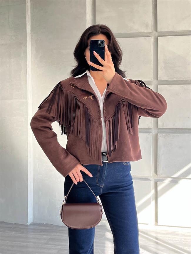 Çoban Dikişli Püsküllü Süet Ceket 23276 Kahve (W25W-STN-00024)