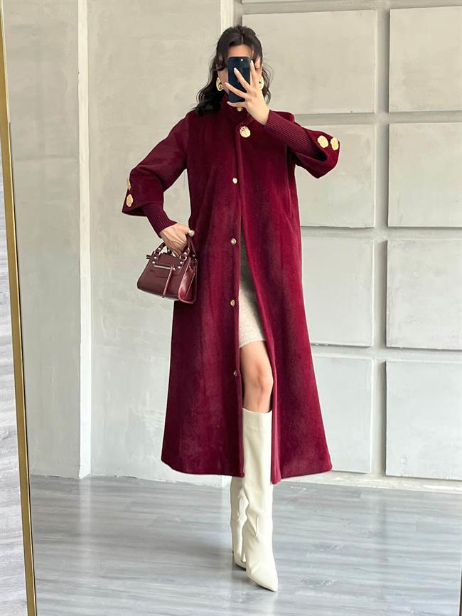 Desenli Düğme Detaylı Kaban 7958 Bordo (W25W-BLB-00004)