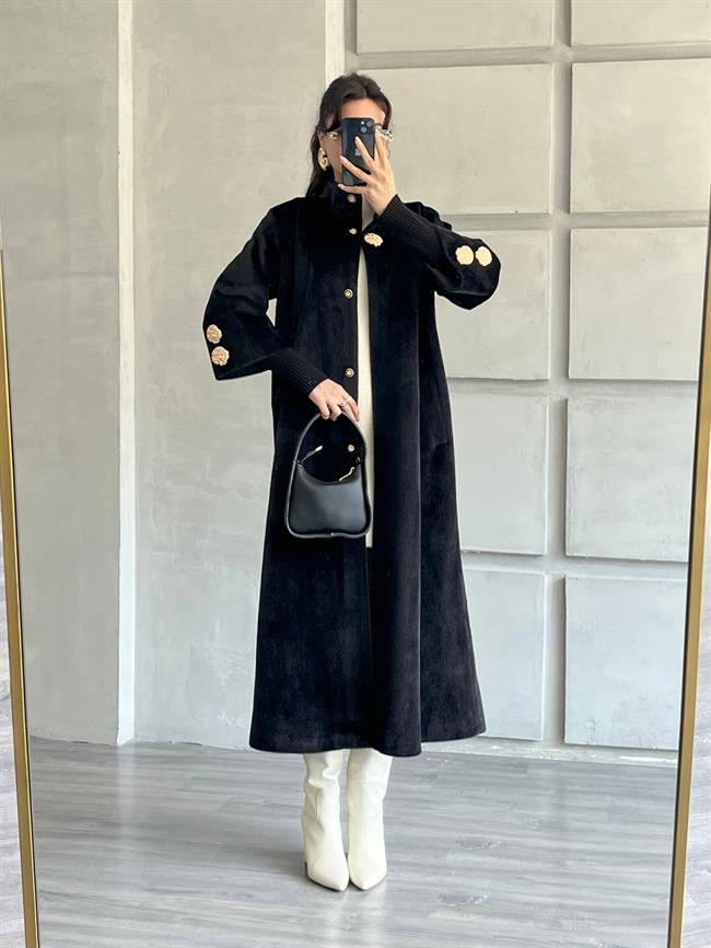 Desenli Düğme Detaylı Kaban 7958 Siyah (W25W-BLB-00004)