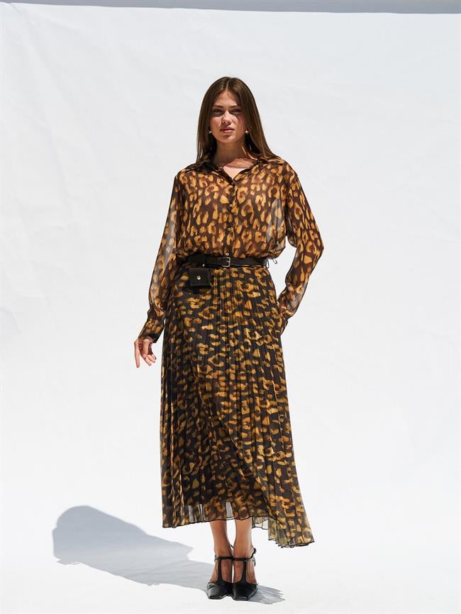 Desenli Piliseli Uzun Etek Sarı (W25W-LF-041102)