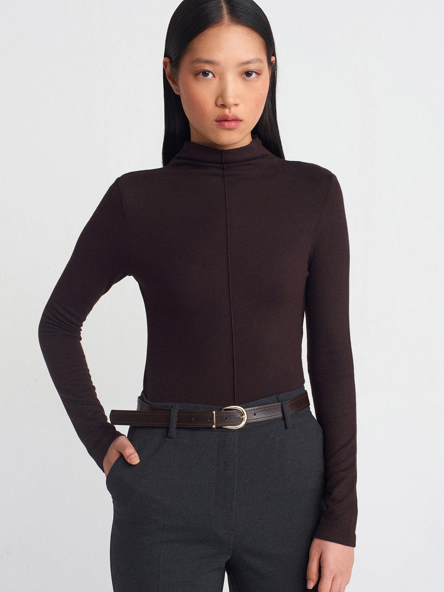 Dik Yaka Uzun Kollu Badi 31391 Koyu Kahve (W25W-DLV-00029)