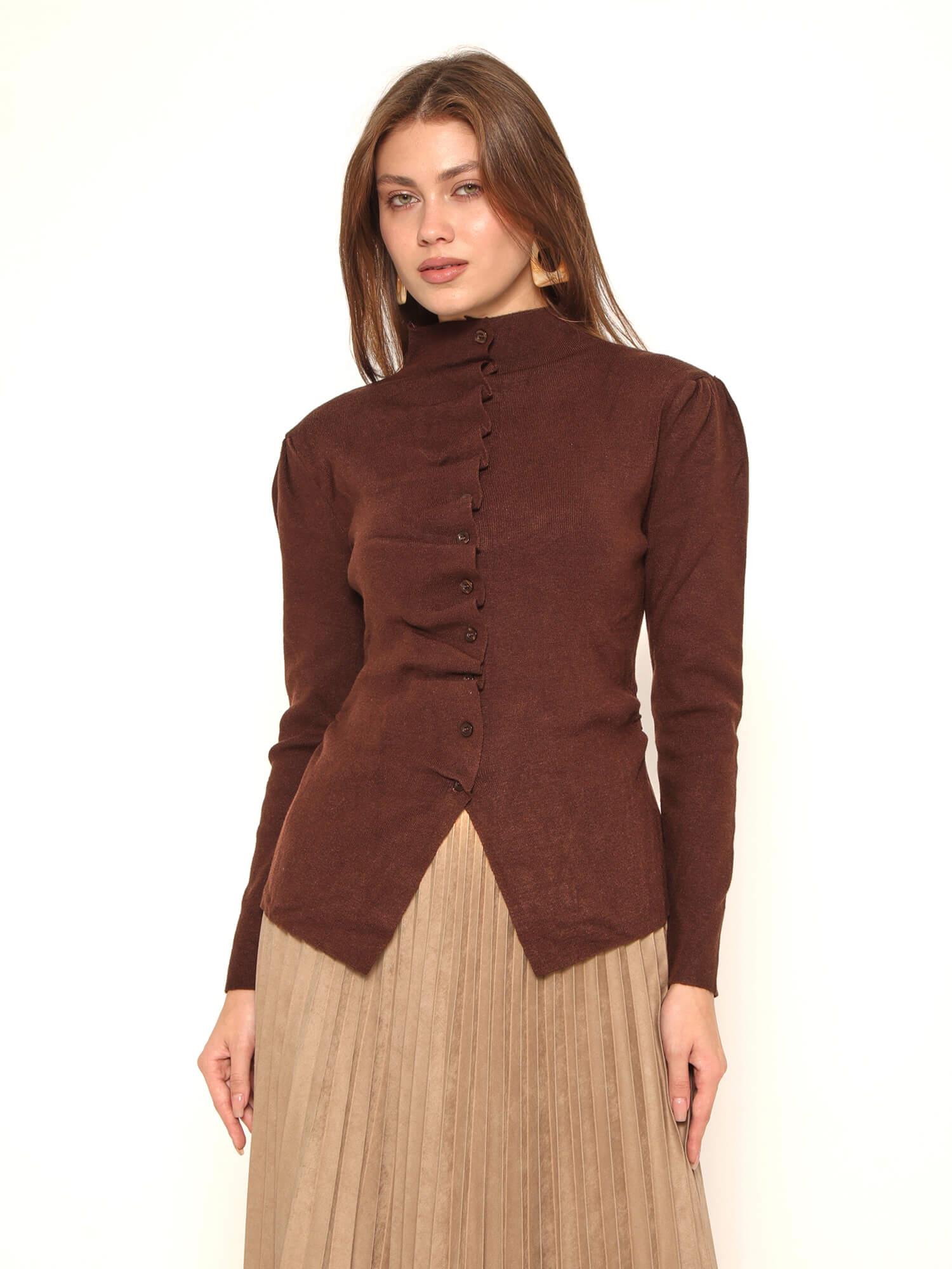 Düğme Üzeri Fırfırlı Kazak 140376 Kahve (w25W-JIJ-00065)