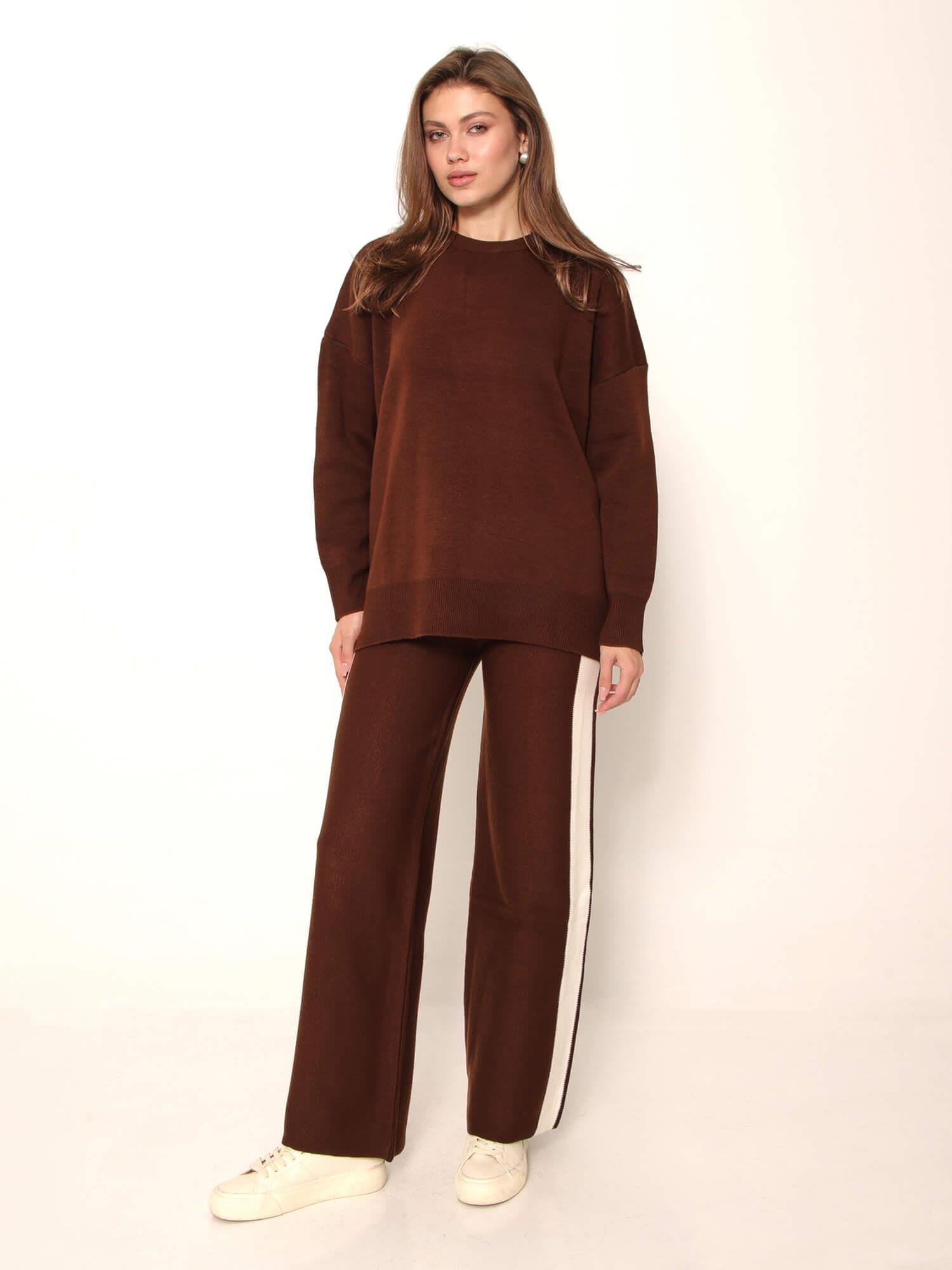 Eteği Kol Ucu Çizgili Pantolonlu Takım 4479 Kahve (W25W-BSU-00050)