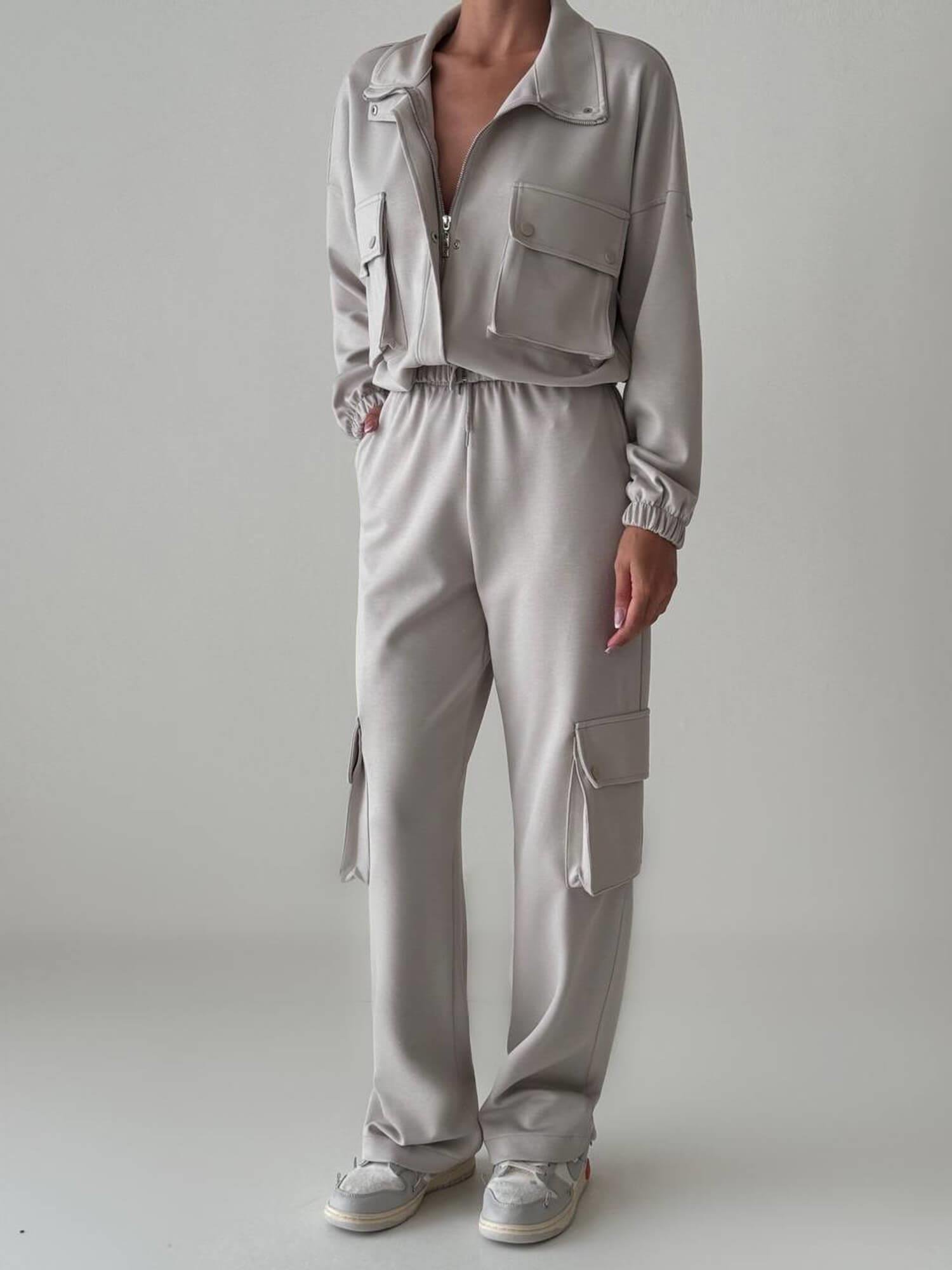Fermuarlı Lastikli Ceket Pantolon Takım 11869 Gri