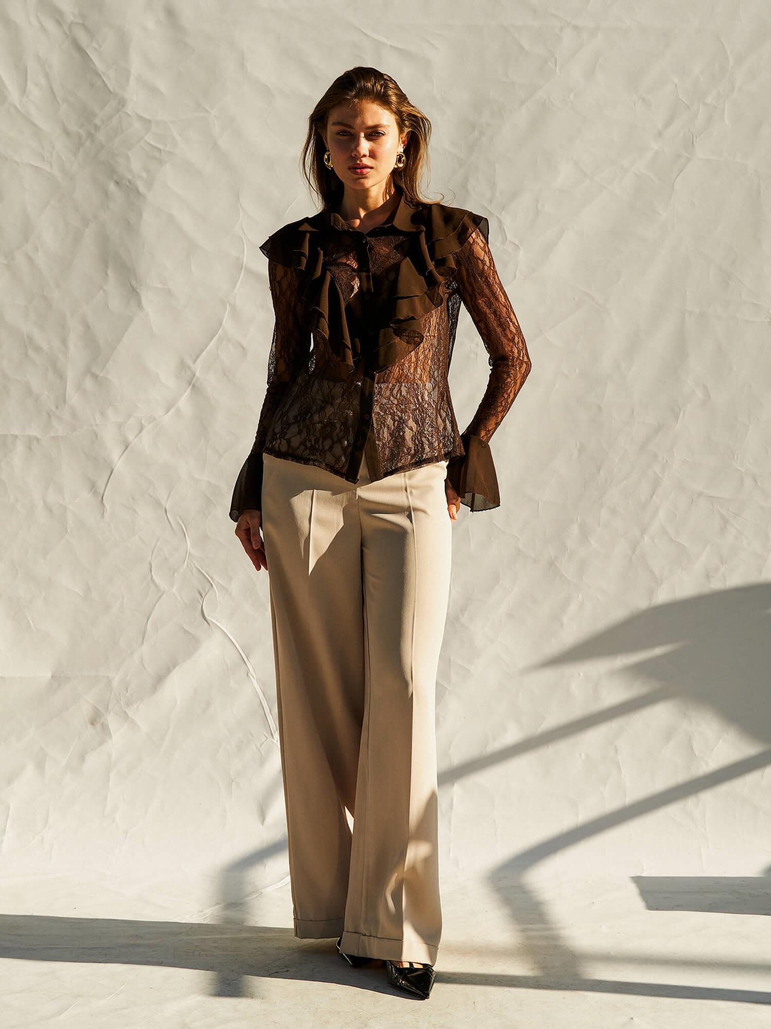 Fırfır Detaylı Dantel Bluz 080707 Kahve (W25W-LF-080707)