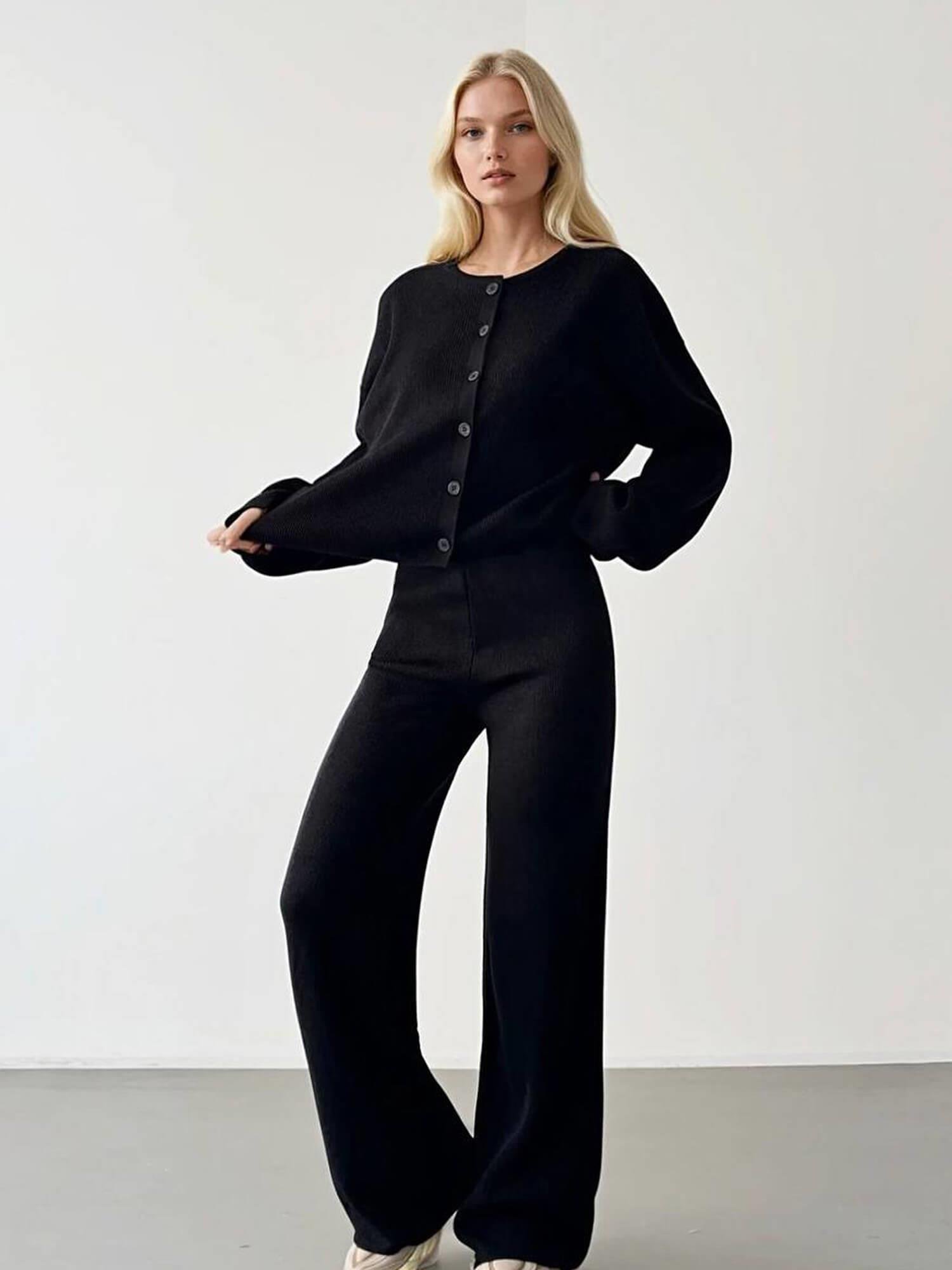 İnce Fitilli Düğmeli Hırka Pantolon Takım 5018 SiyahCoral