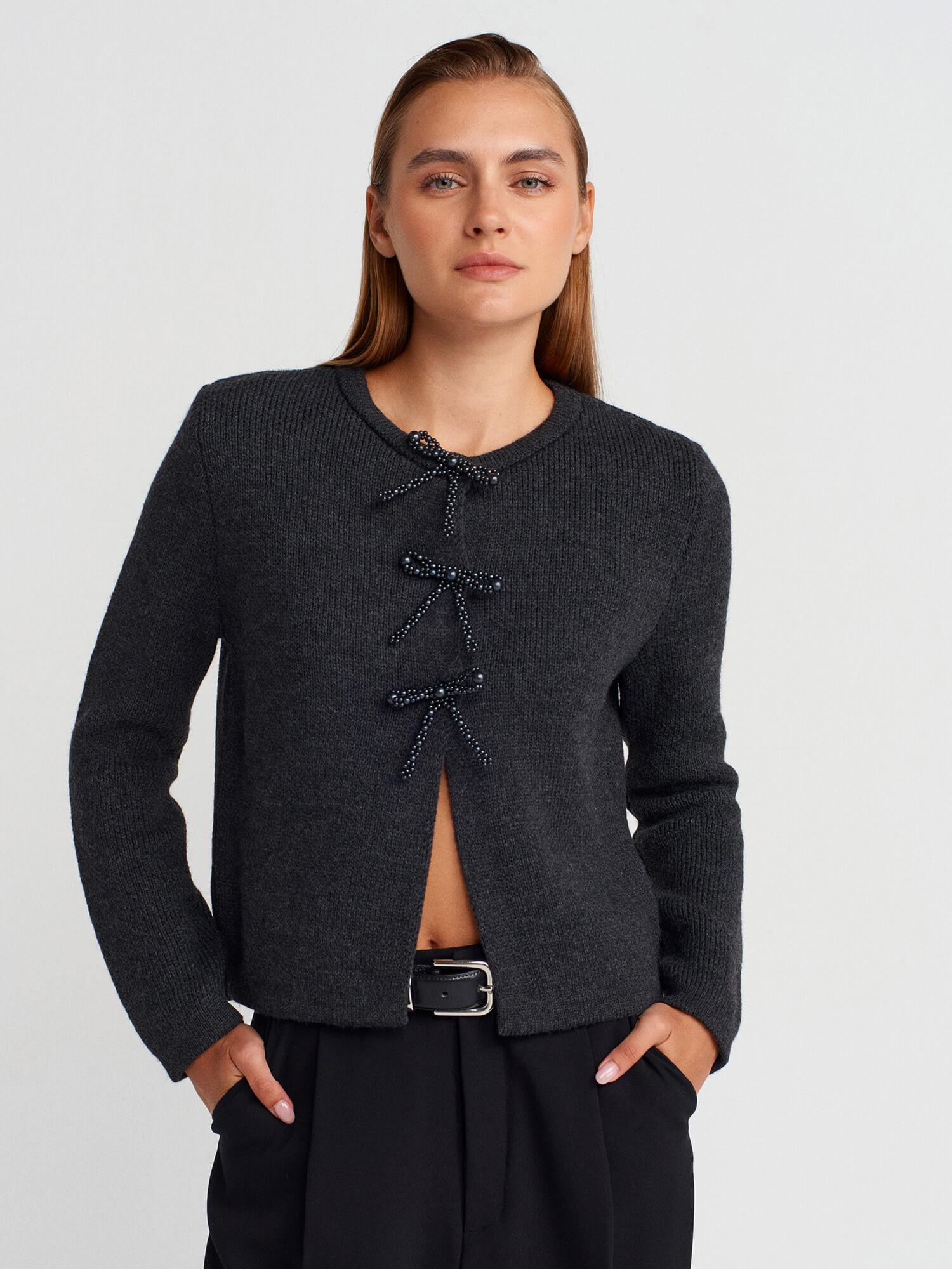İncili Fiyonk Düğmeli Hırka 60983 Antrasit (W25W-DLV-00012)