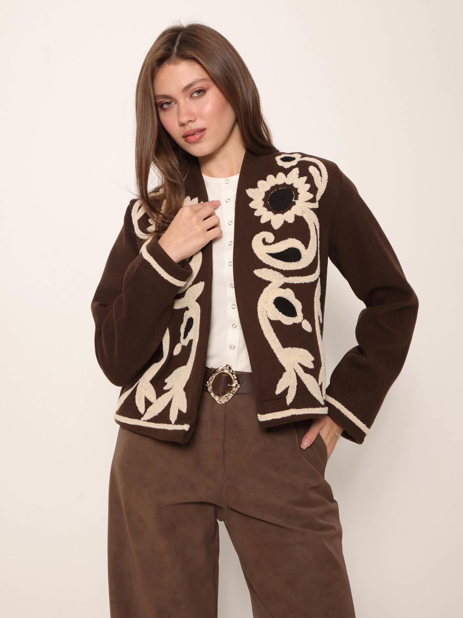 Kabartmalı Çiçek İşlemeli Ceket 4058 Kahve (W25W-SVG-00027)