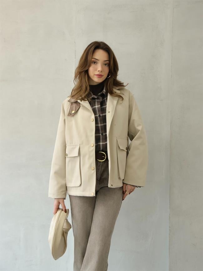Kadife Yakalı Cepli Mont 0213 Bej (W25W-FLW-00040)