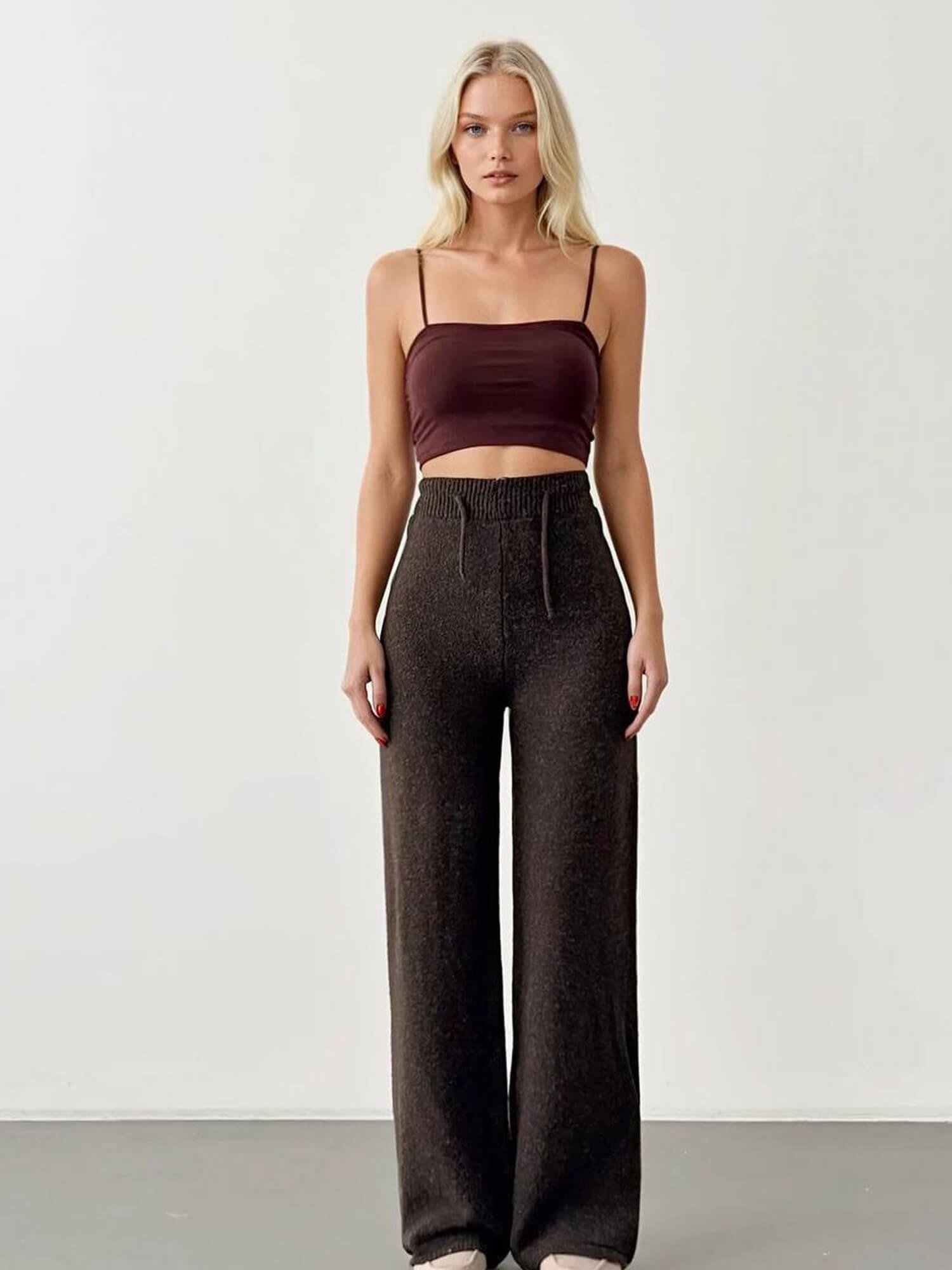 Kalın Dokumalı Bol Pantolon 5051 Kahve