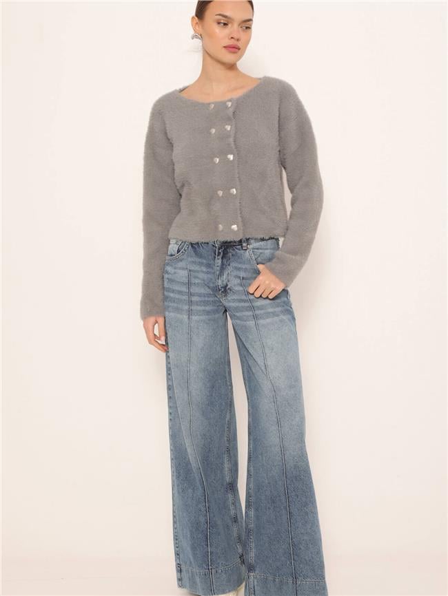 Kalp Düğmeli Yumoş Hırka Gri (W24W-JIJ-00191)