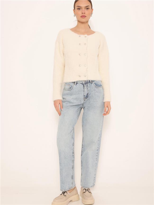 Kalp Düğmeli Yumoş Hırka Vanilya (W24W-JIJ-00191)
