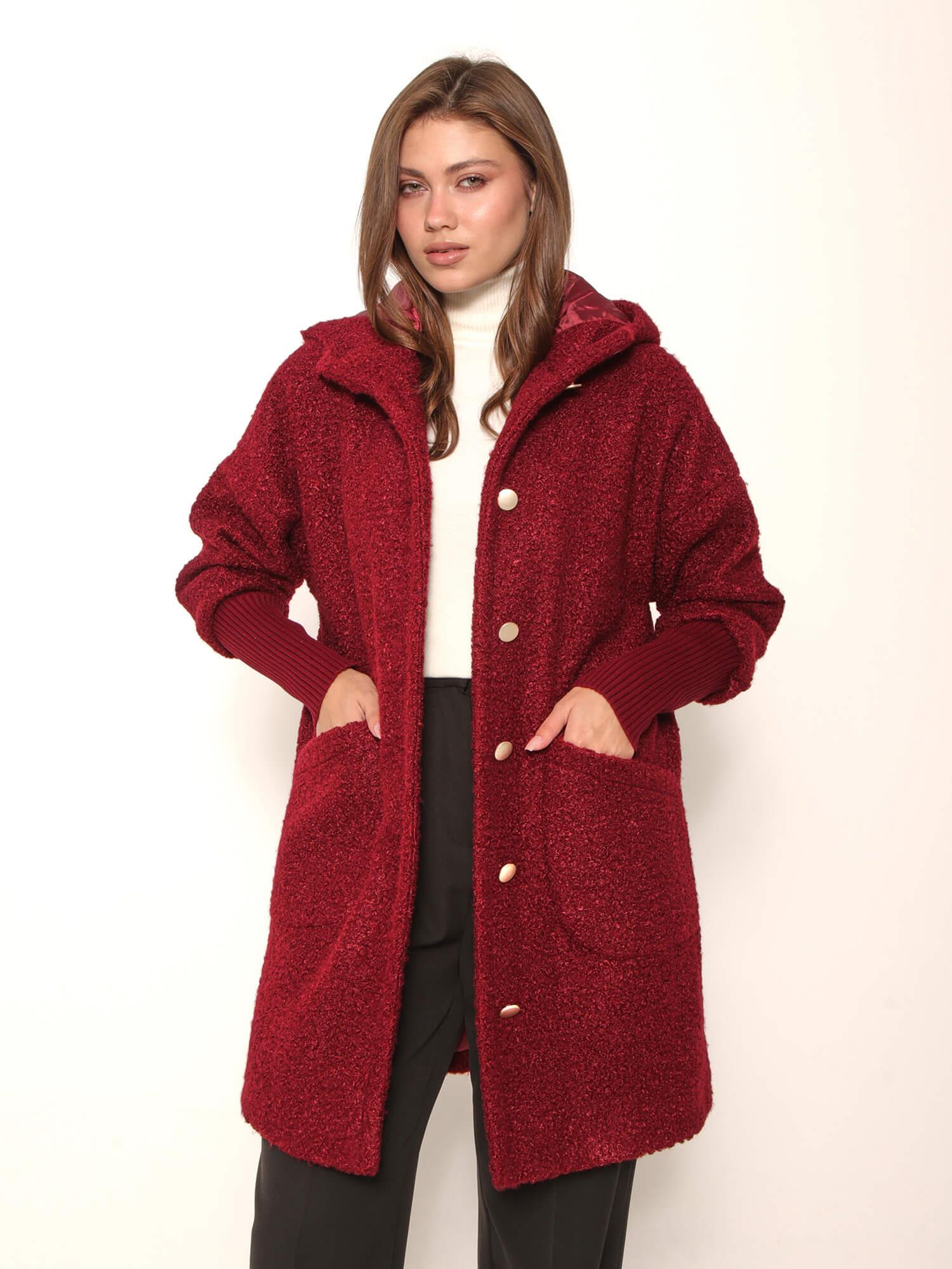 Kapüşonlu Peluş Kaban 7891 Bordo (W25W-BLB-00018)