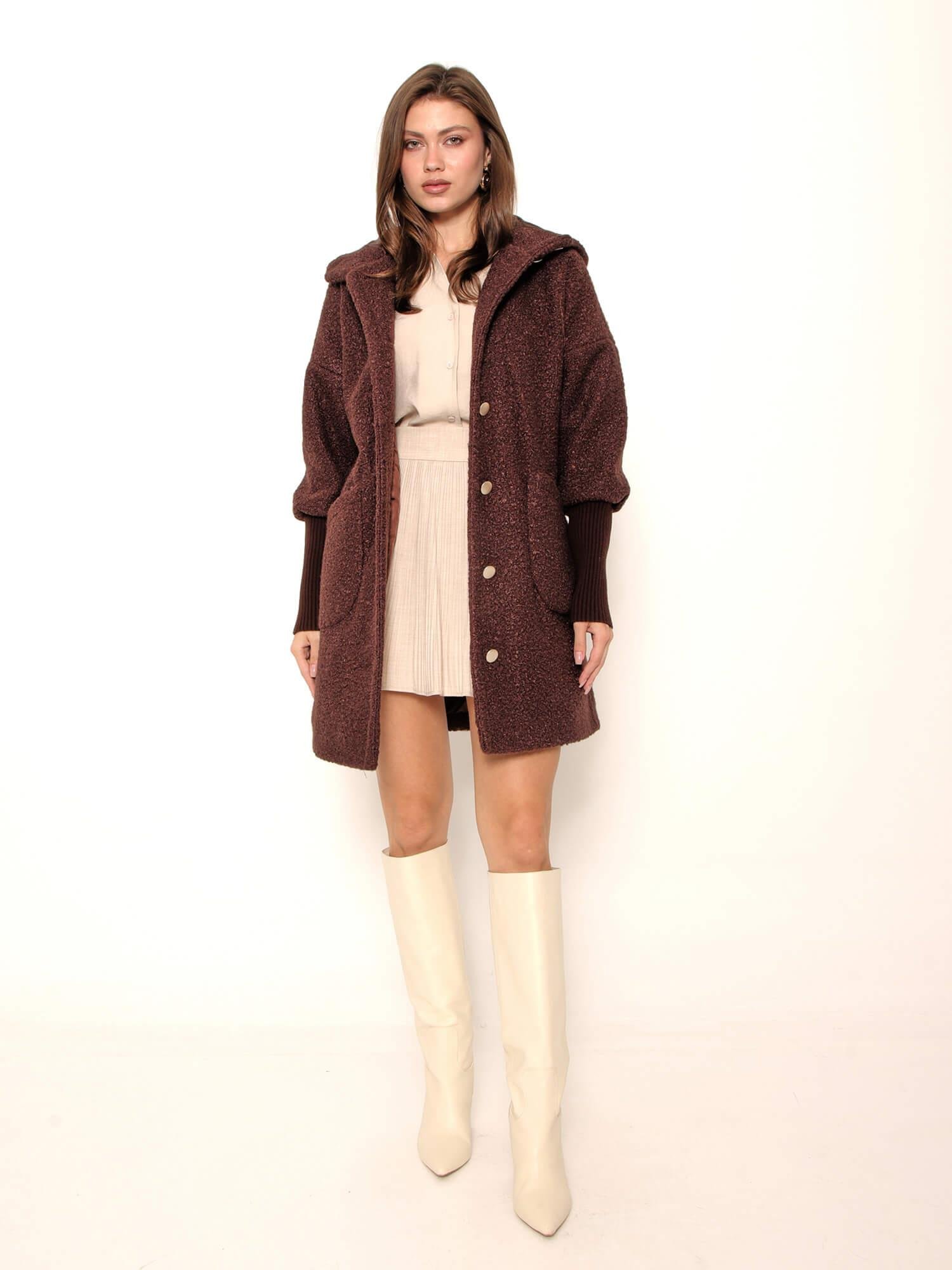 Kapüşonlu Peluş Kaban 7891 Koyu Kahve (W25W-BLB-00018)