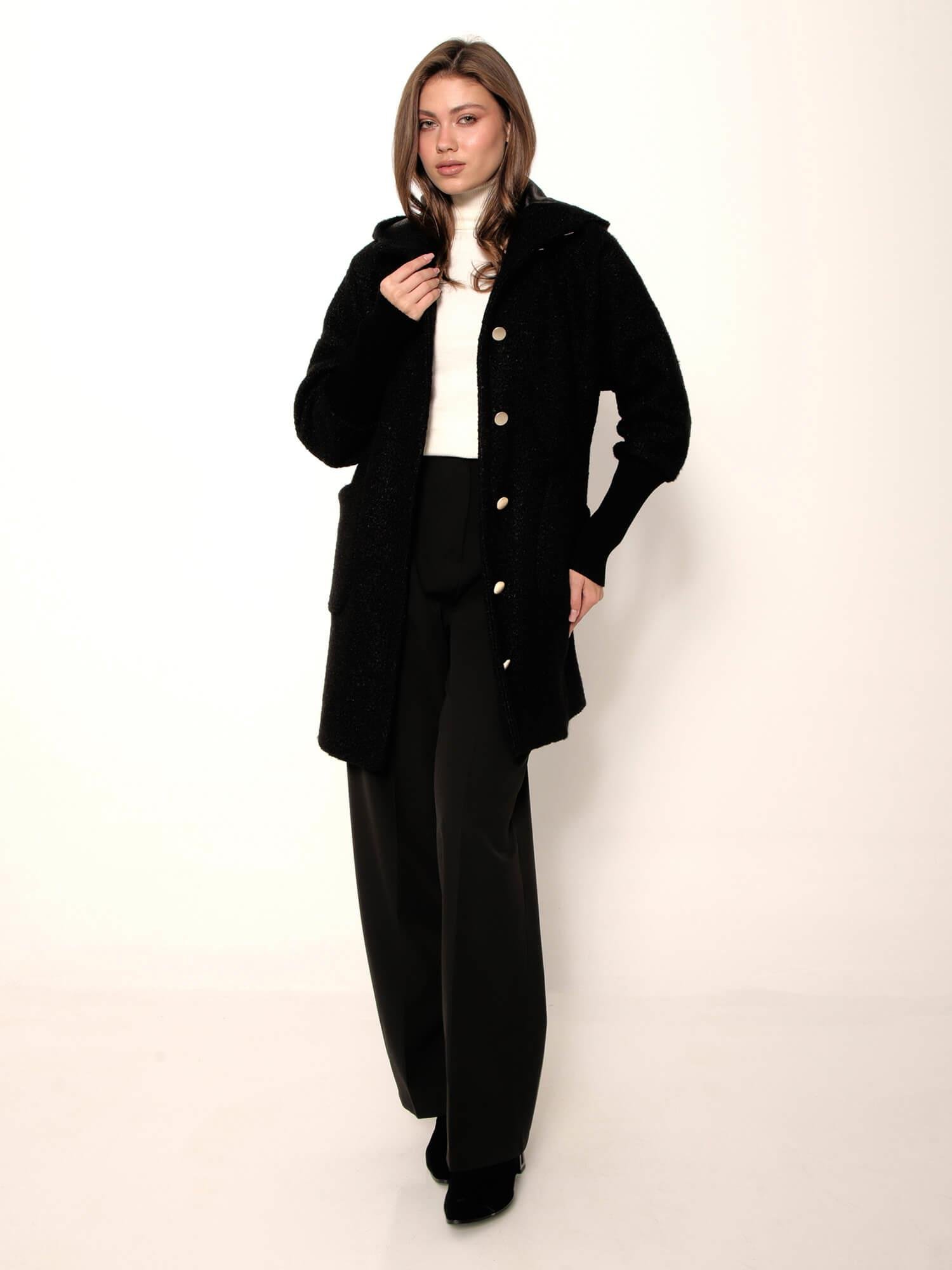 Kapüşonlu Peluş Kaban 7891 Siyah (W25W-BLB-00018)