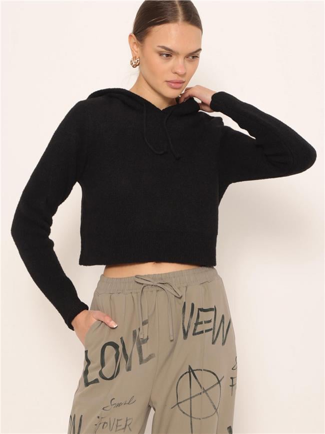 Kapüşonlu Yumuşak Dokulu Kazak Siyah (w24W-JIJ-00177)