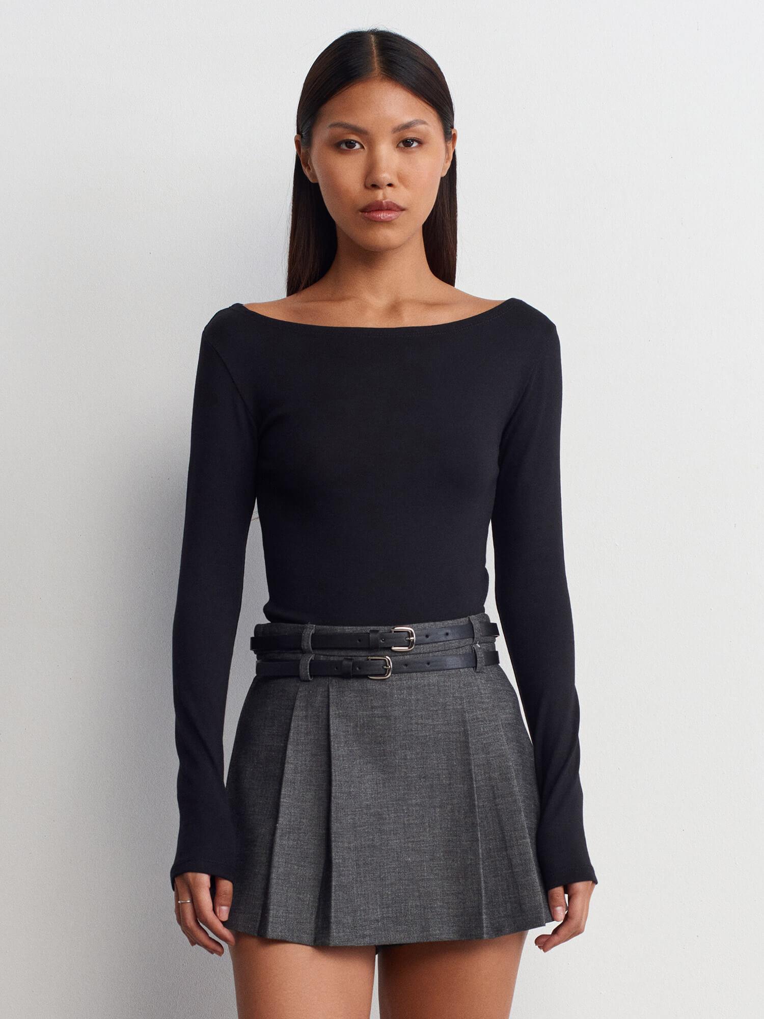 Kayık Yaka Uzun Kol Triko 31332 Siyah Coral