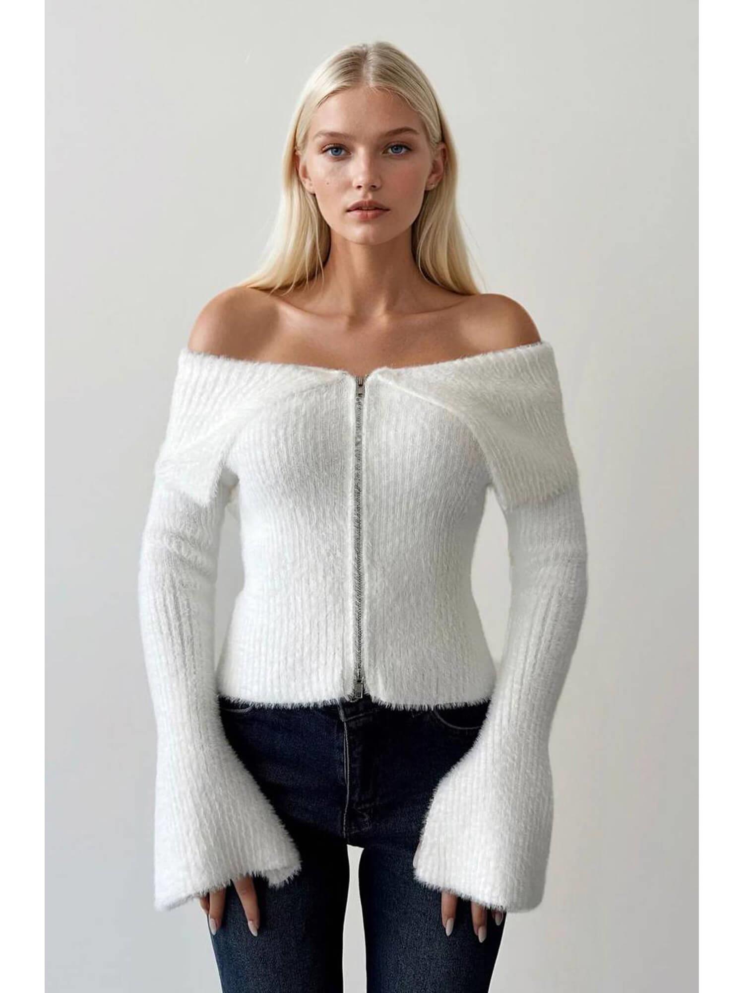 Kolları Kesik Fermuarlı Hırka 4952 BeyazCoral