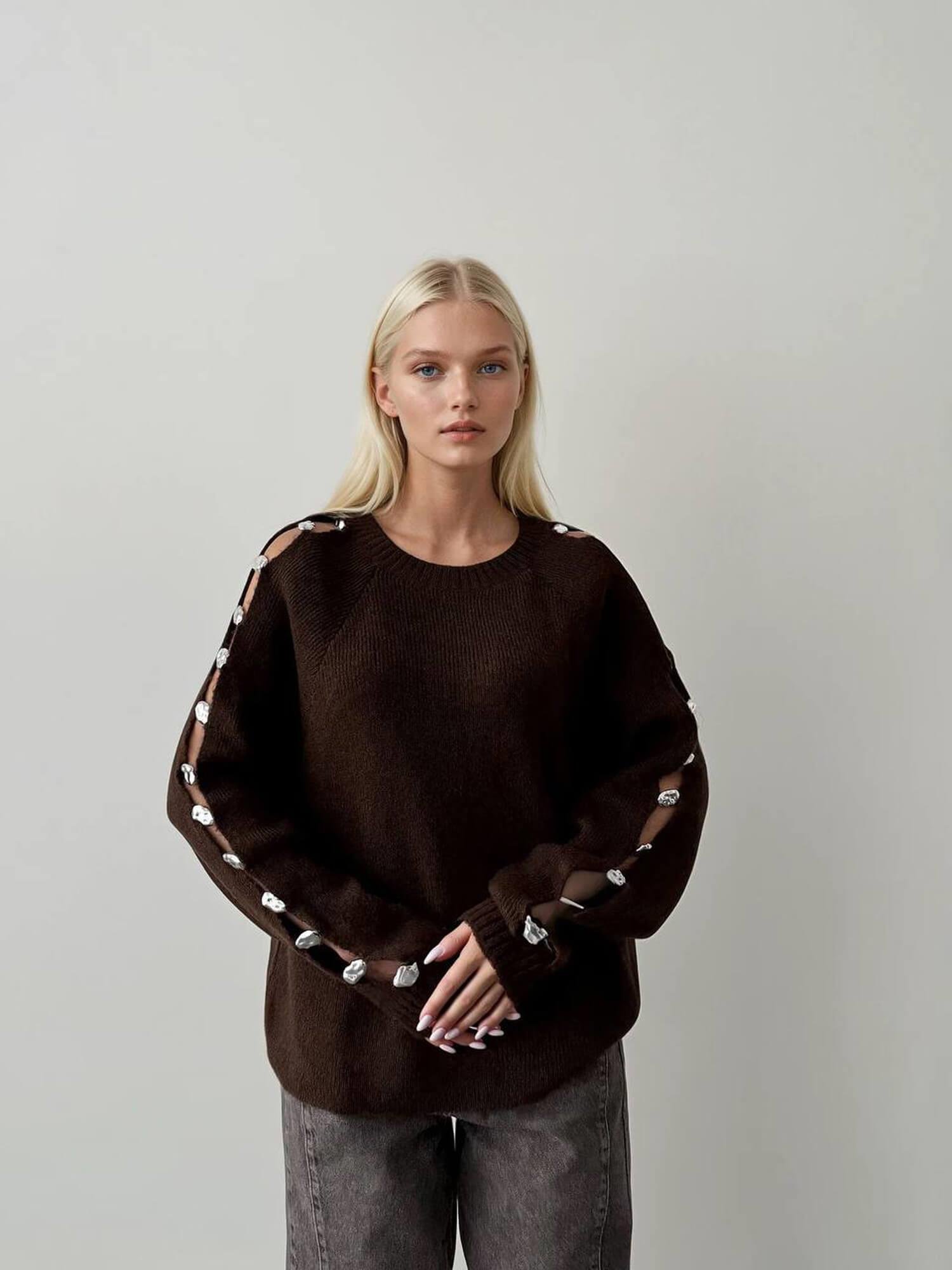 Kolları Yırtmaçlı Düğmeli Kazak 4688 Kahve (W25W-BSU-00024)