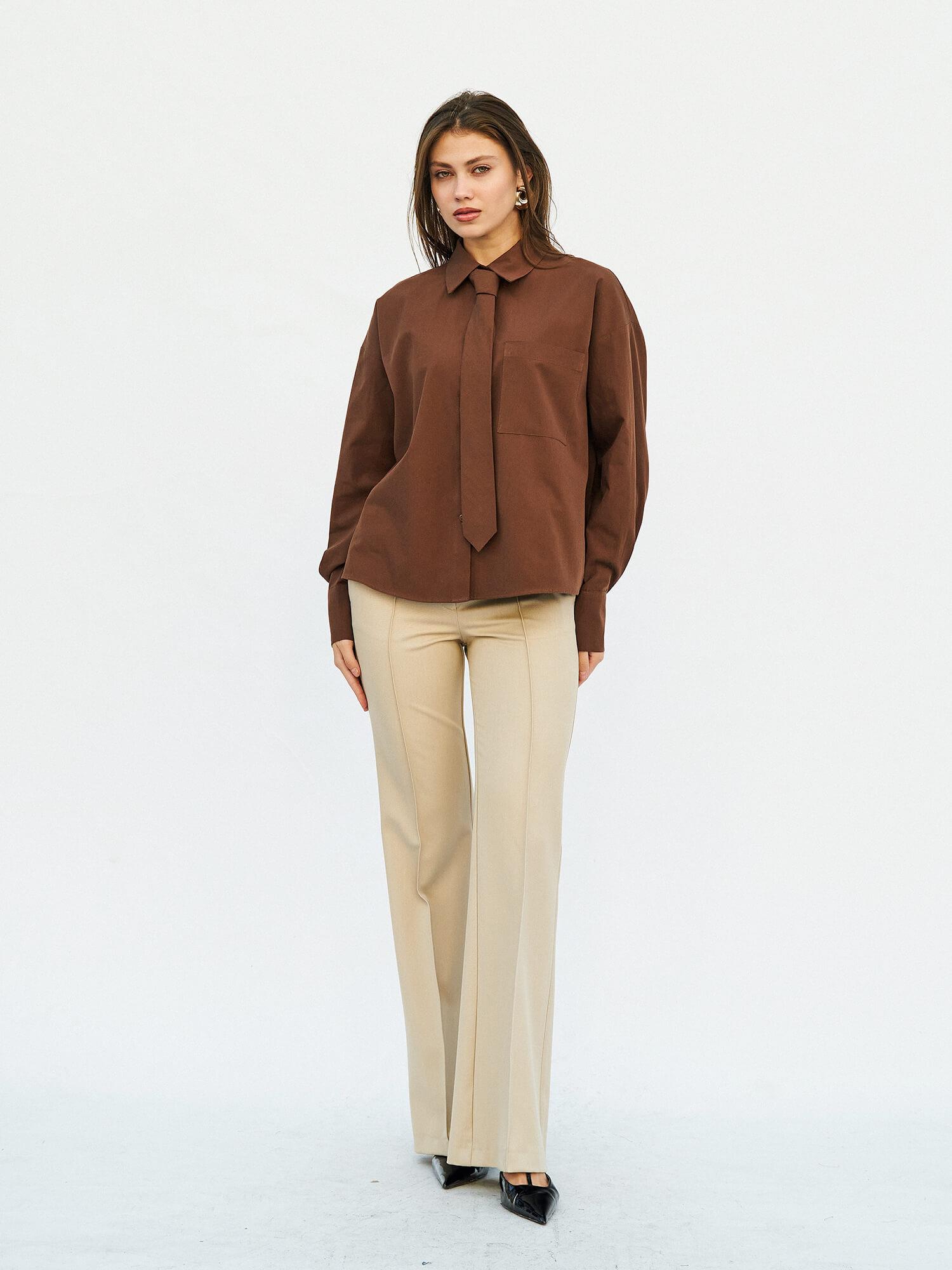 Kravatlı Tek Cep Gömlek 080733 Kahve (W25W-LF-080733)