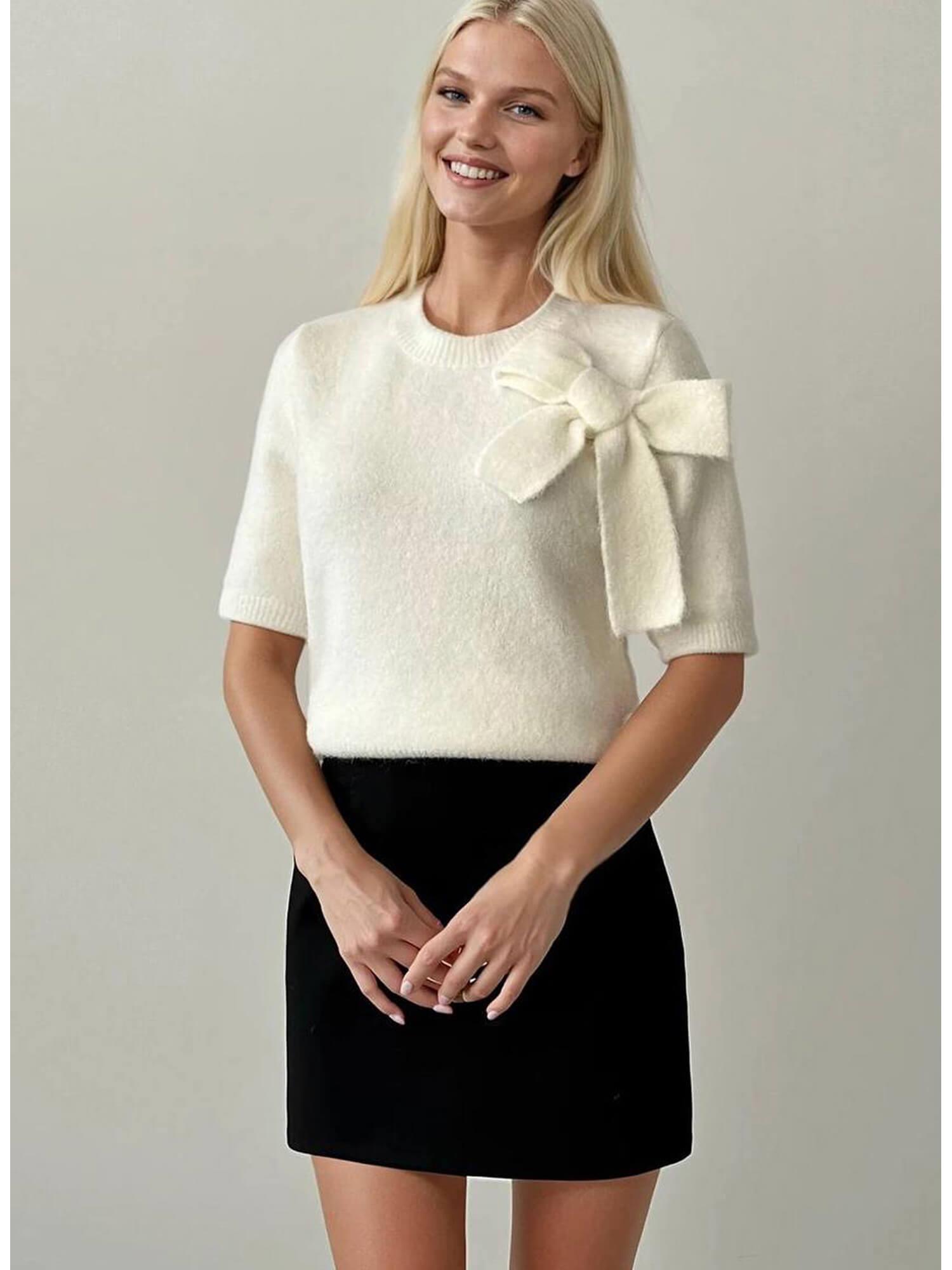 Omzu Fiyonklu Kısa Kol Kazak 5095 Ekru (W25W-BSU-00047)