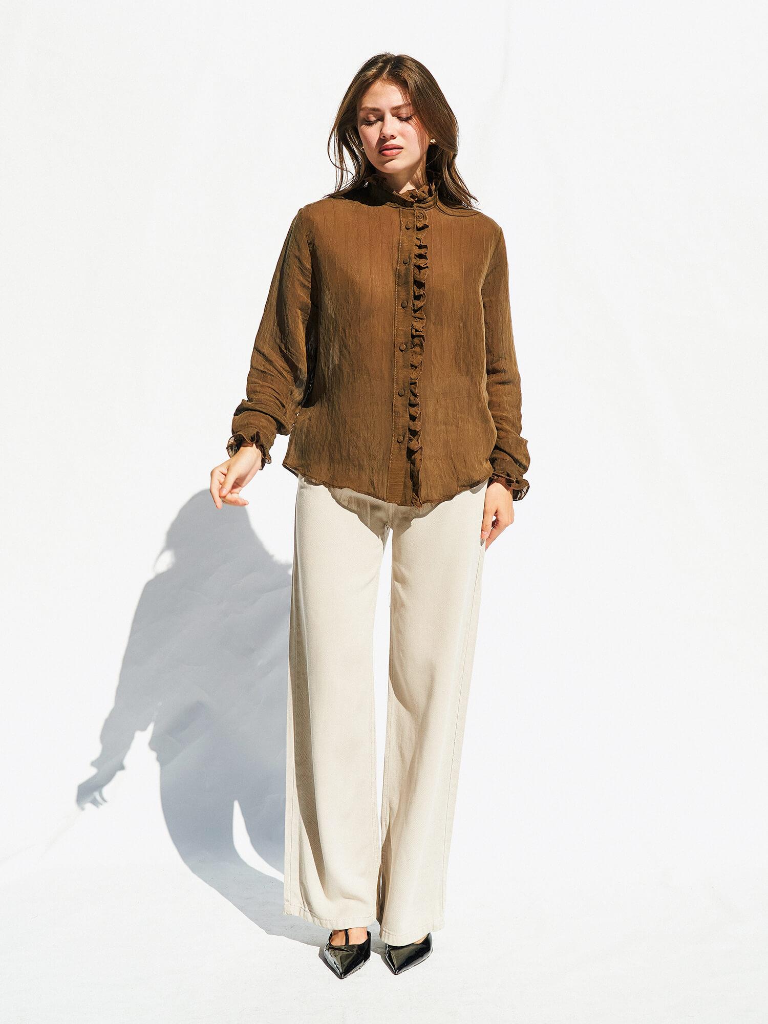 Önü Fırfır Detaylı Gömlek Kahve (W25W-LF-080701)