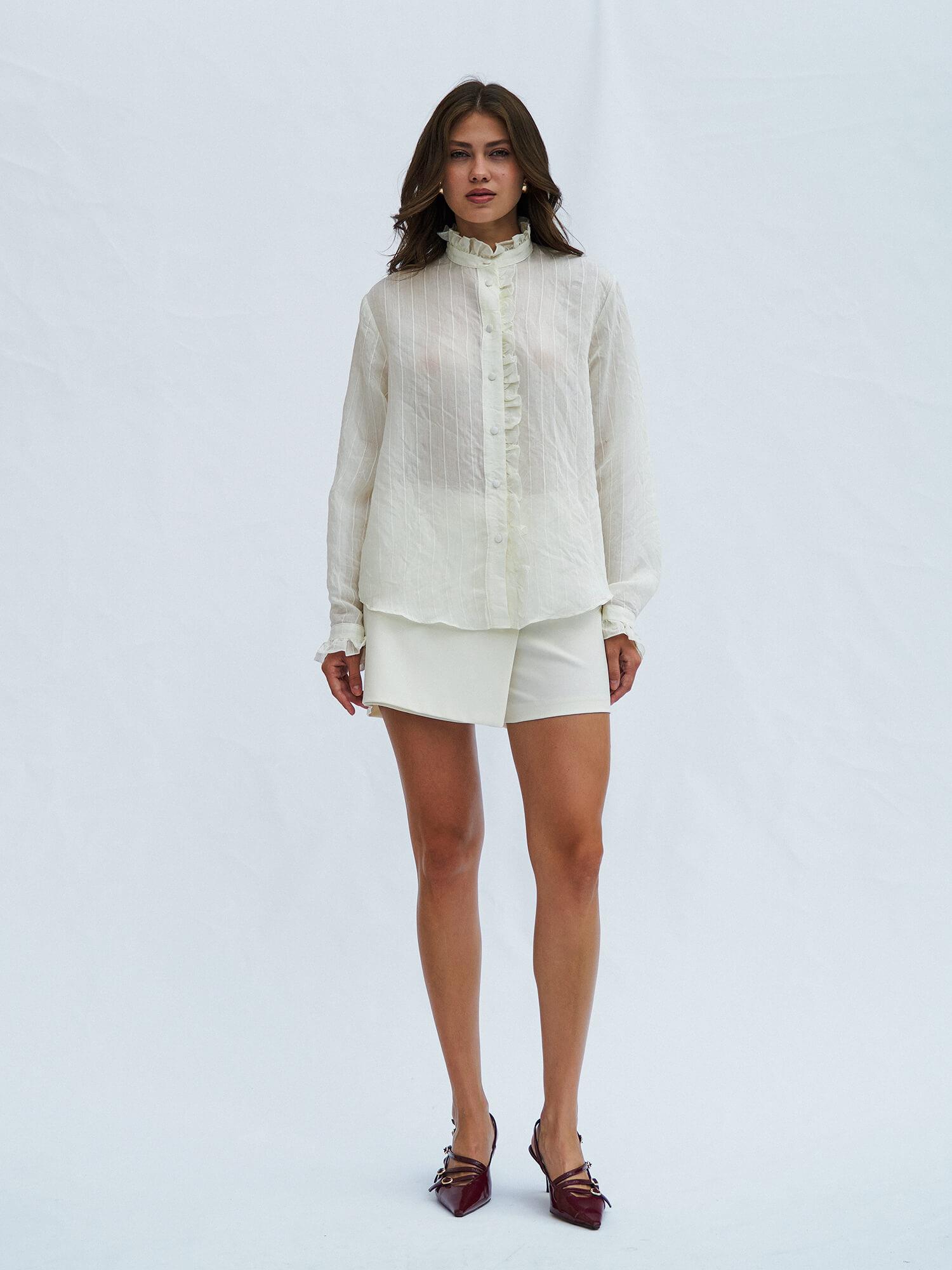 Önü Fırfır Detaylı Gömlek Krem (W25W-LF-080701)