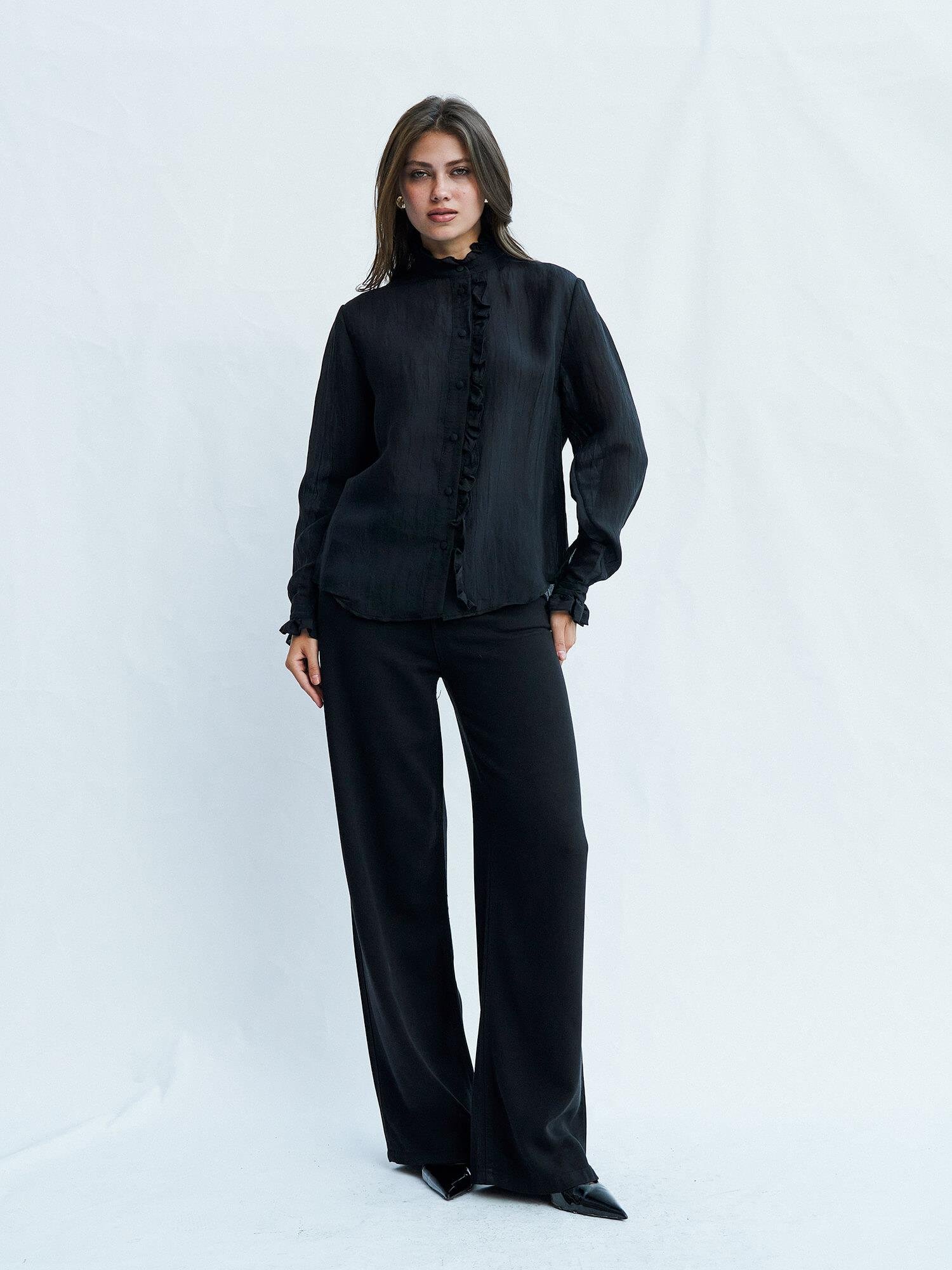 Önü Fırfır Detaylı Gömlek Siyah (W25W-LF-080701)