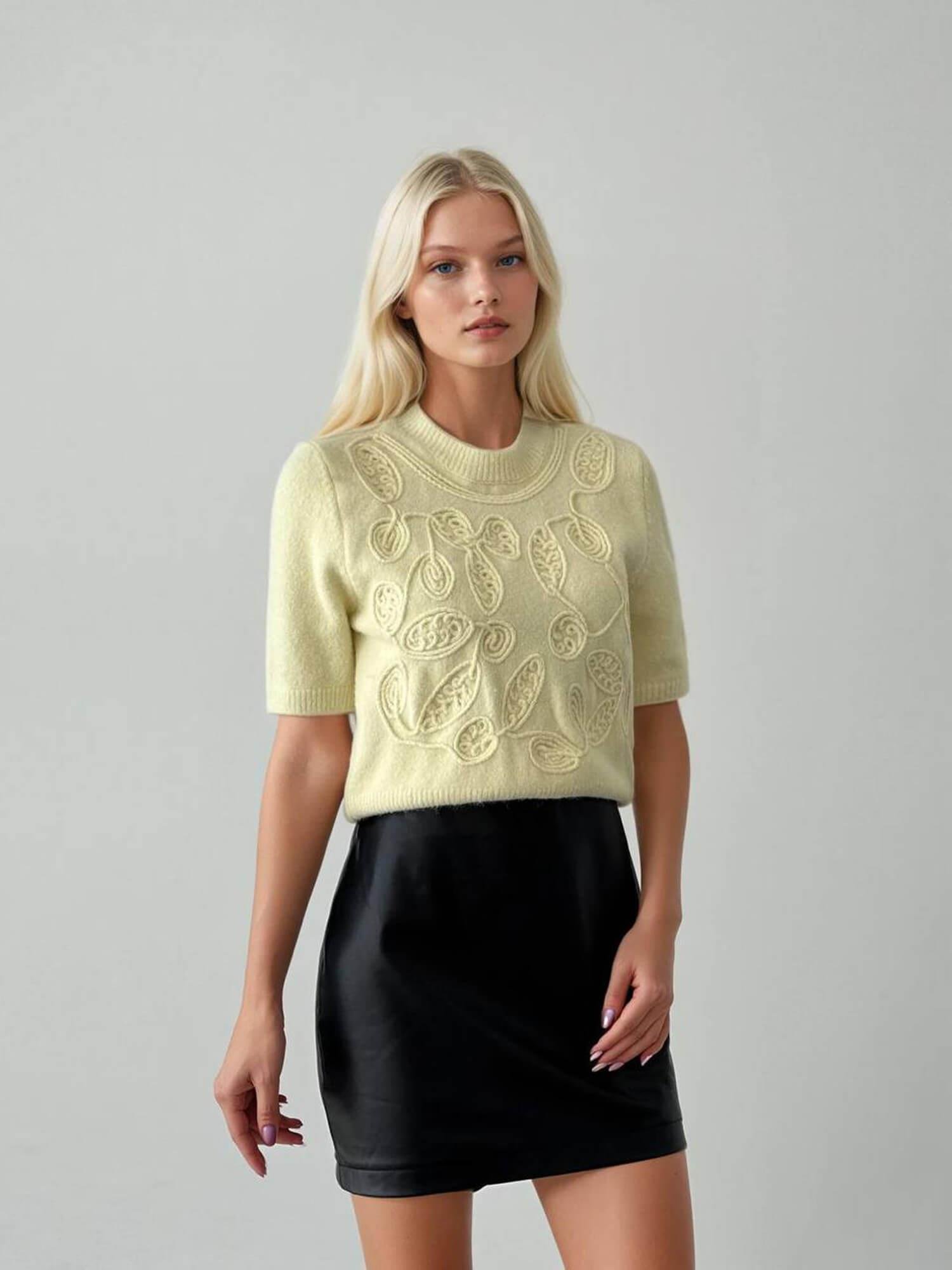 Önü İşlemeli Kısa Kazak 5021 Sarı (W25W-BSU-00033)