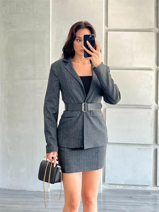 Önü Kemer Detaylı Ceket Siyah (W25W-LF-130982)