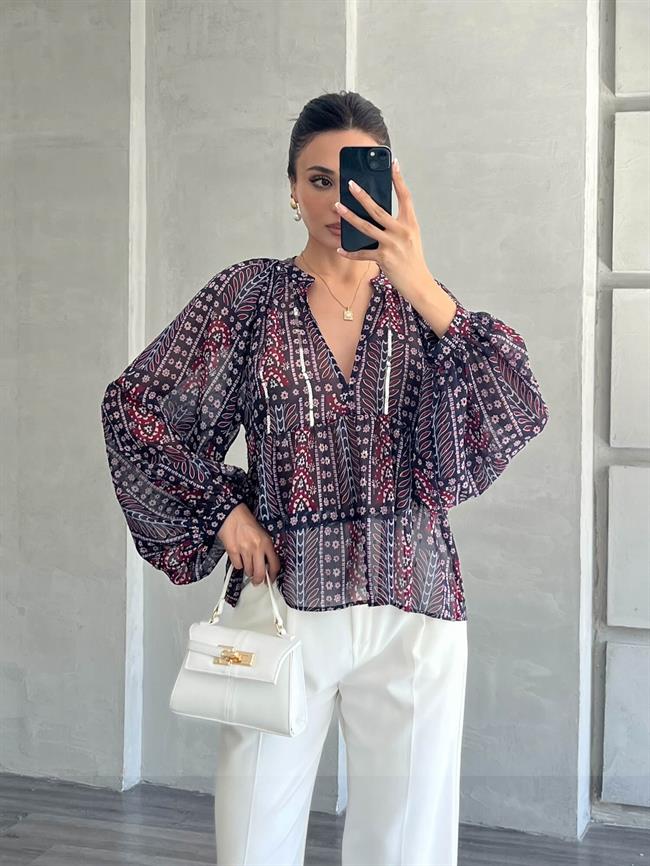 Pullu Desenli Bluz Lacivert (W25S-CHN-00128)