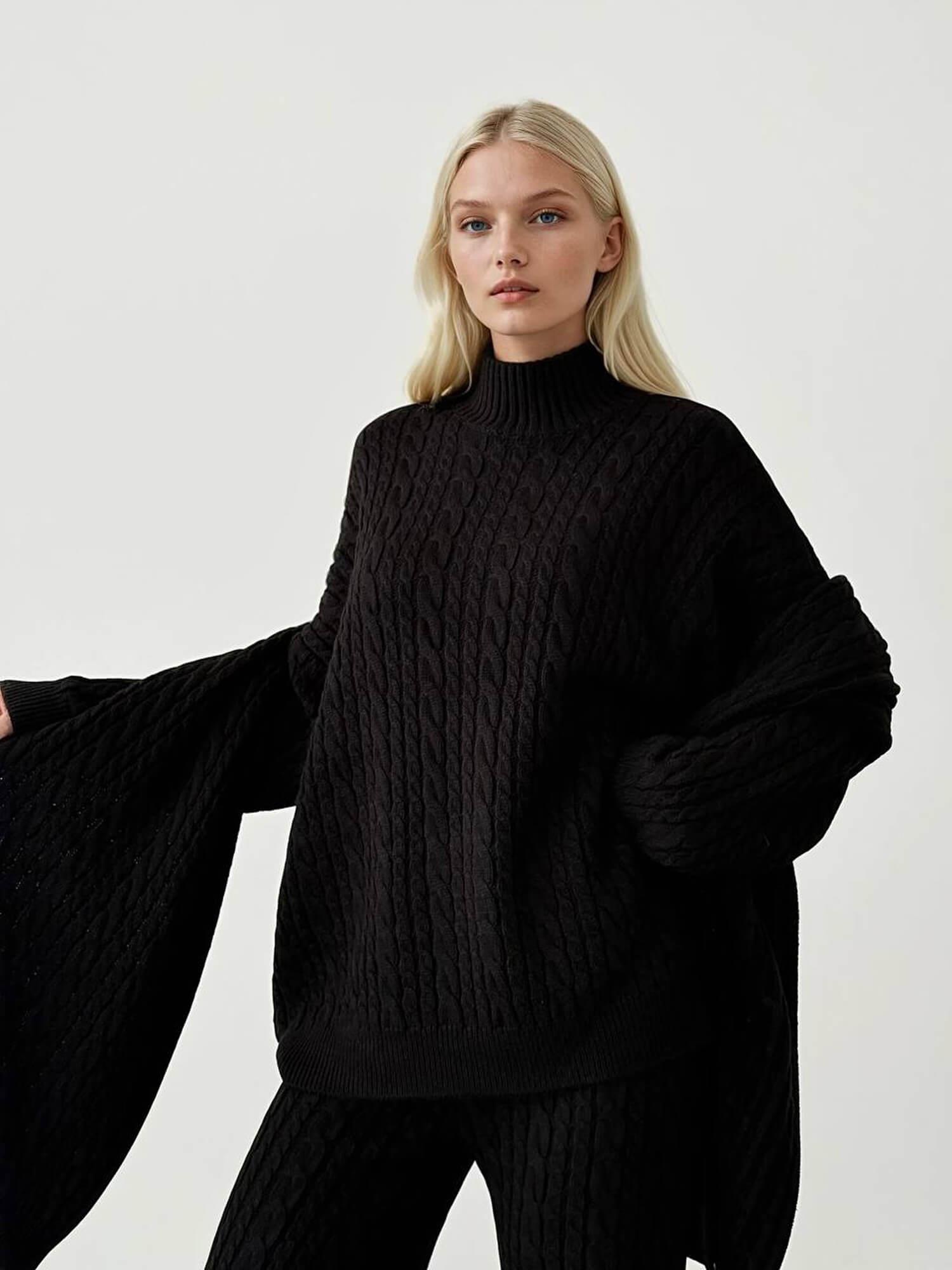 Şallı Hırka Pantolon Takım 5030 Siyah Şallı Hırka Pantolon Takım 5030 Ekru
