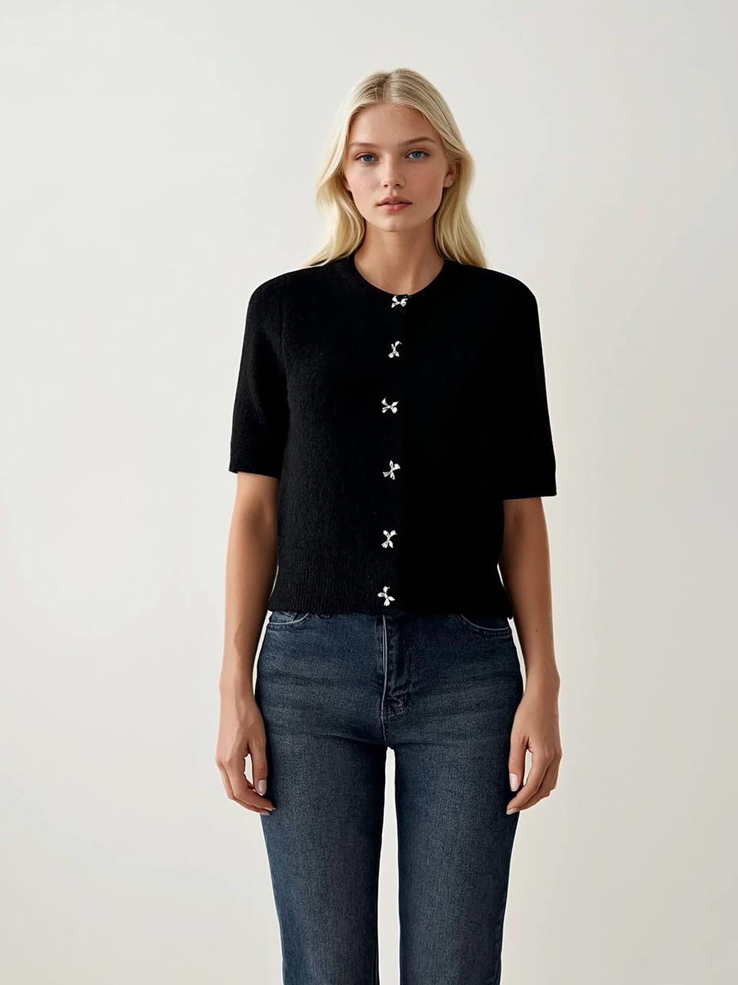 Taşlı Düğmeli Kısa Kol Hırka 4865 Siyah (W25W-BSU-00030)