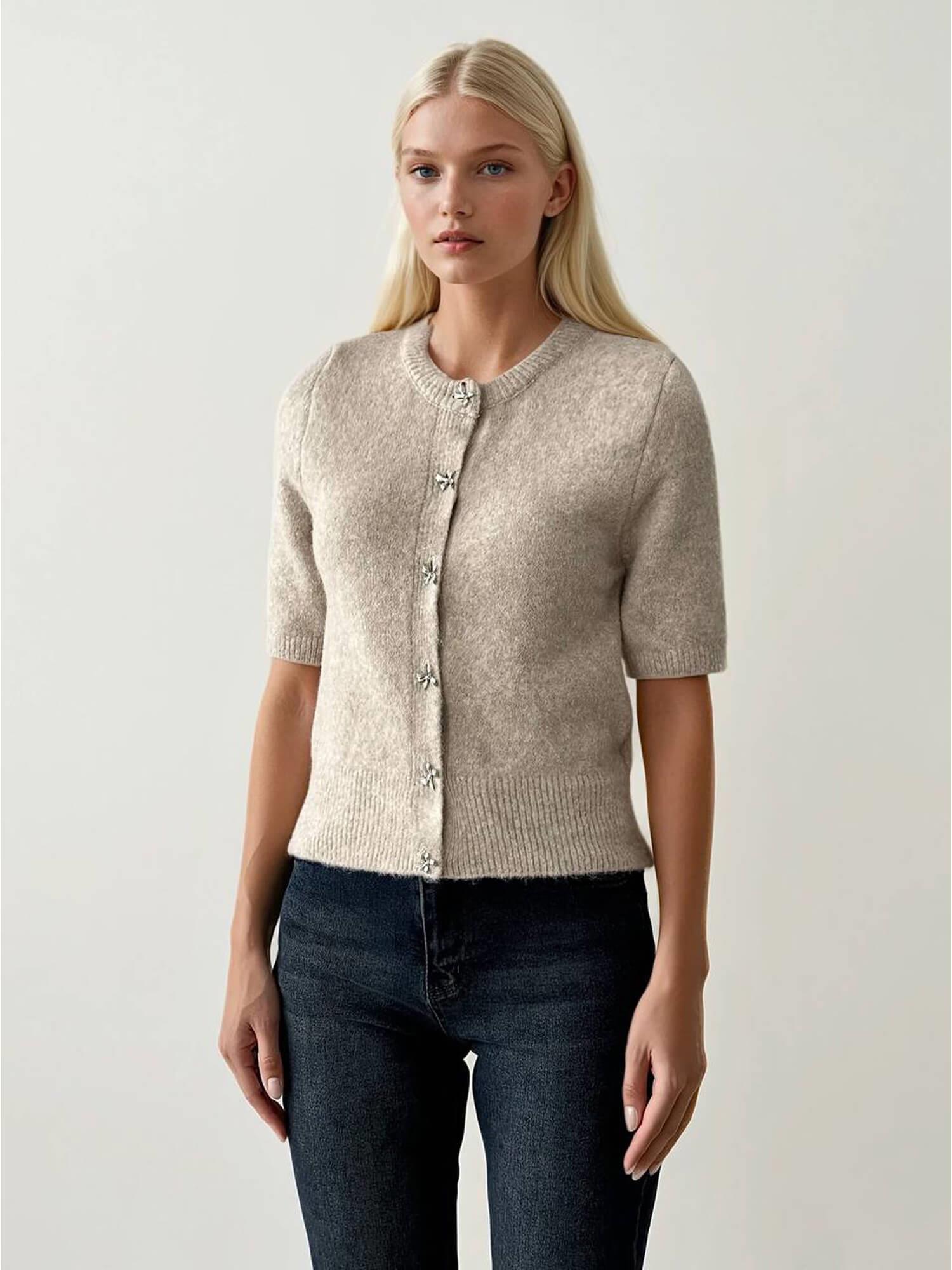 Taşlı Düğmeli Kısa Kol Hırka 4865 Taş (W25W-BSU-00030)