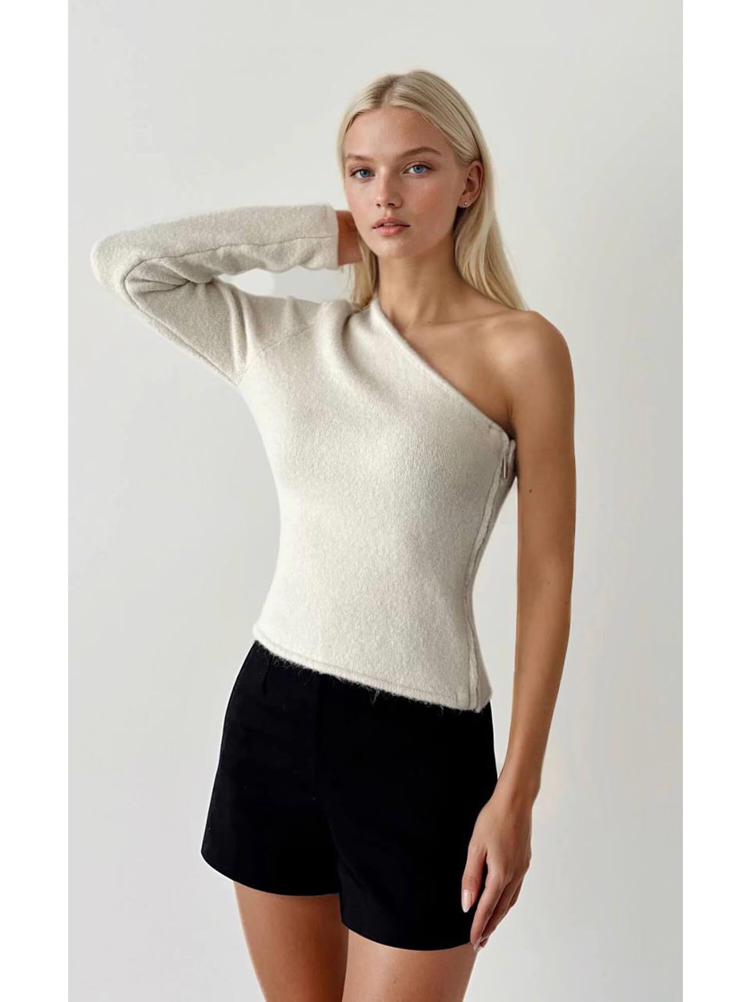 Tek Kol Yandan Fermuarlı Kazak 4940 Krem (W25W-BSU-00027)