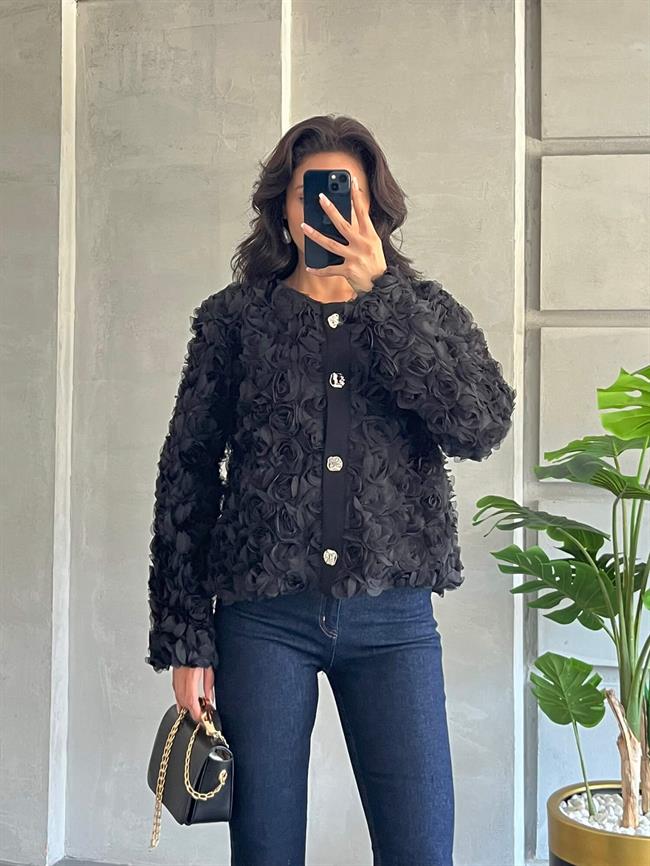 Tül Detaylı Cicekli Ceket Siyah (W25W-KMD-00016)