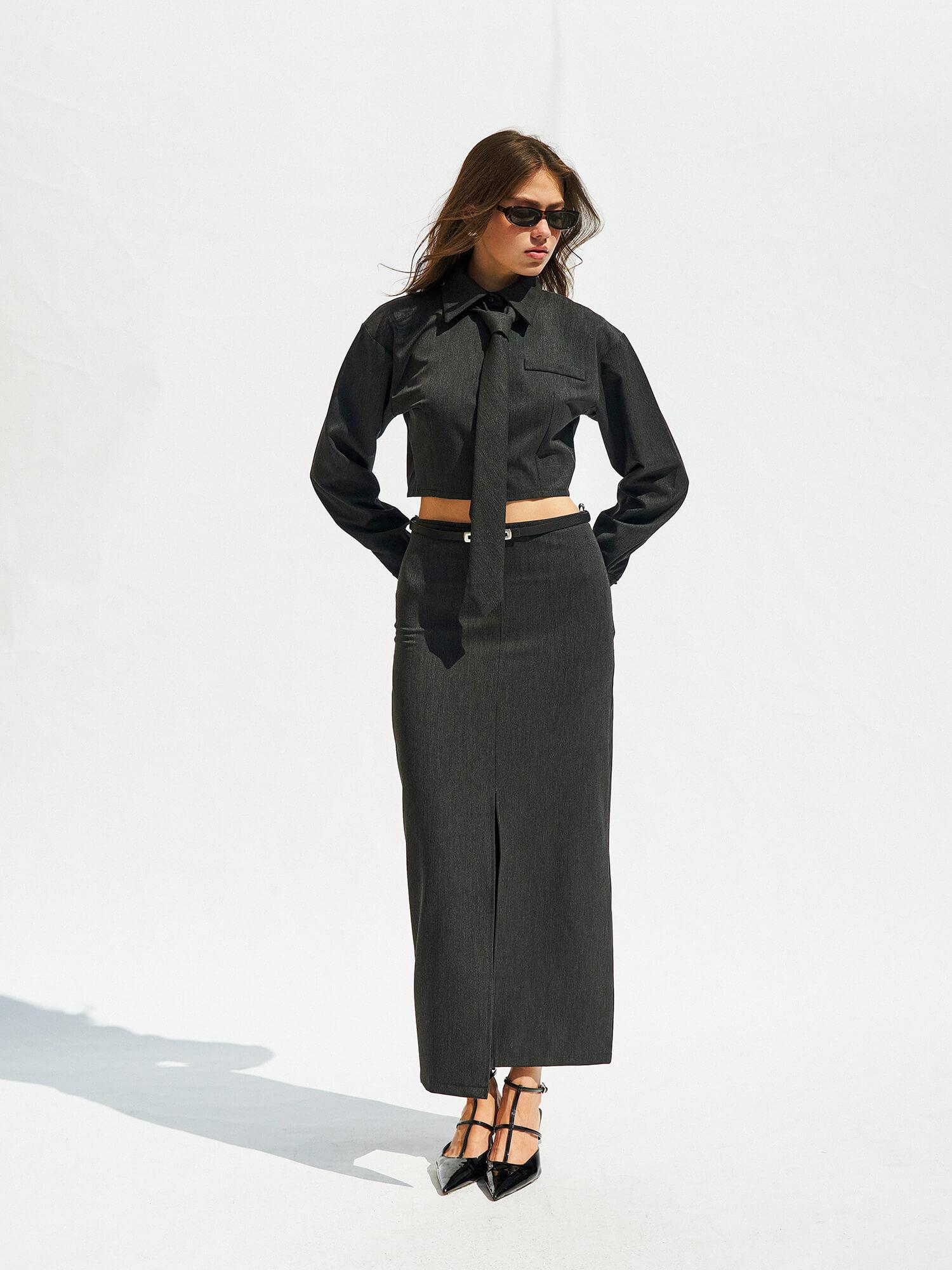 Uzun Kollu Crop Gömlek Antrasit (W25W-LF-080717)