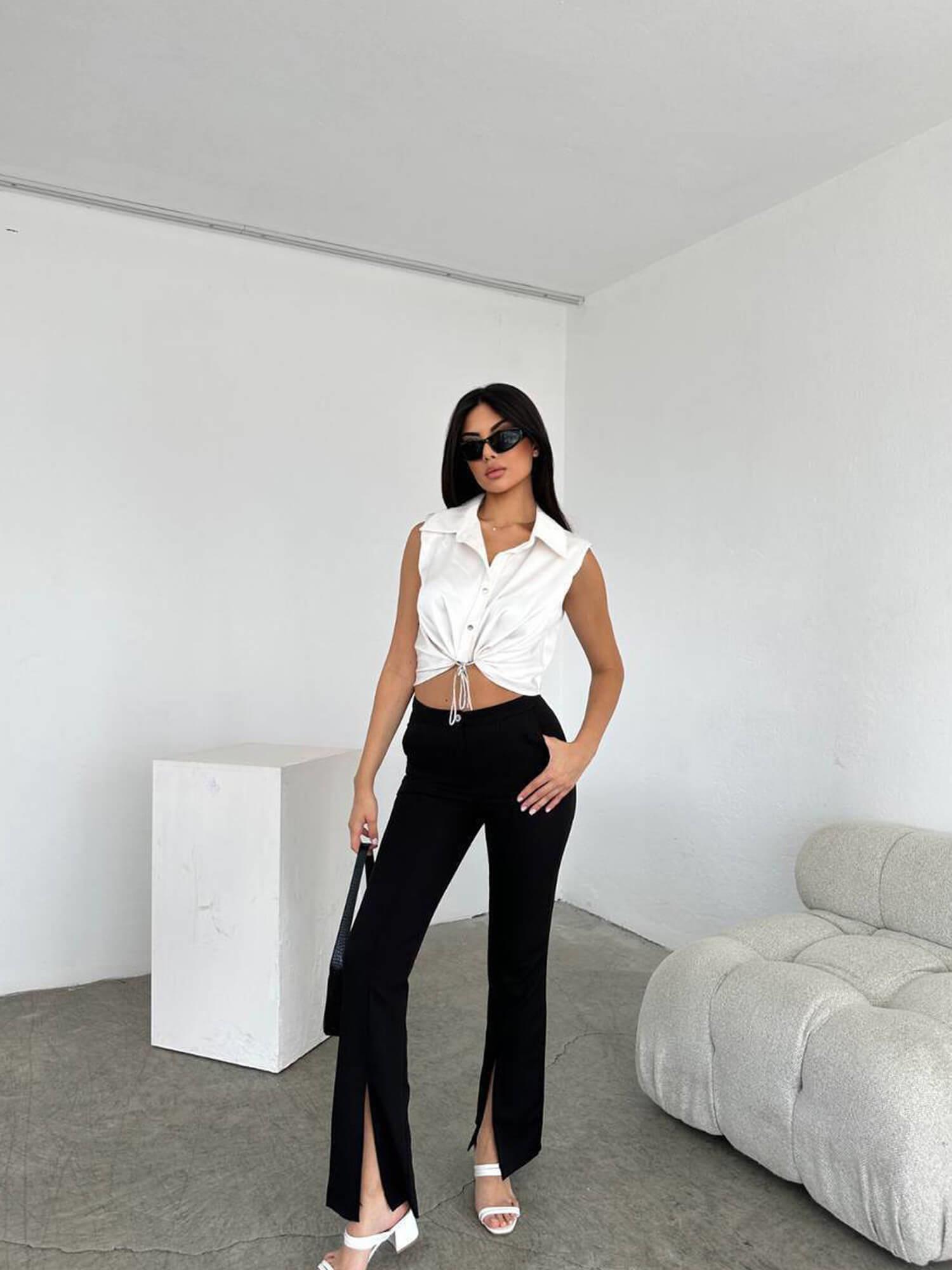 Yakalı Ön Bağlama Detaylı Bluz 241188 Ekru (W25W-KNZ-00015)